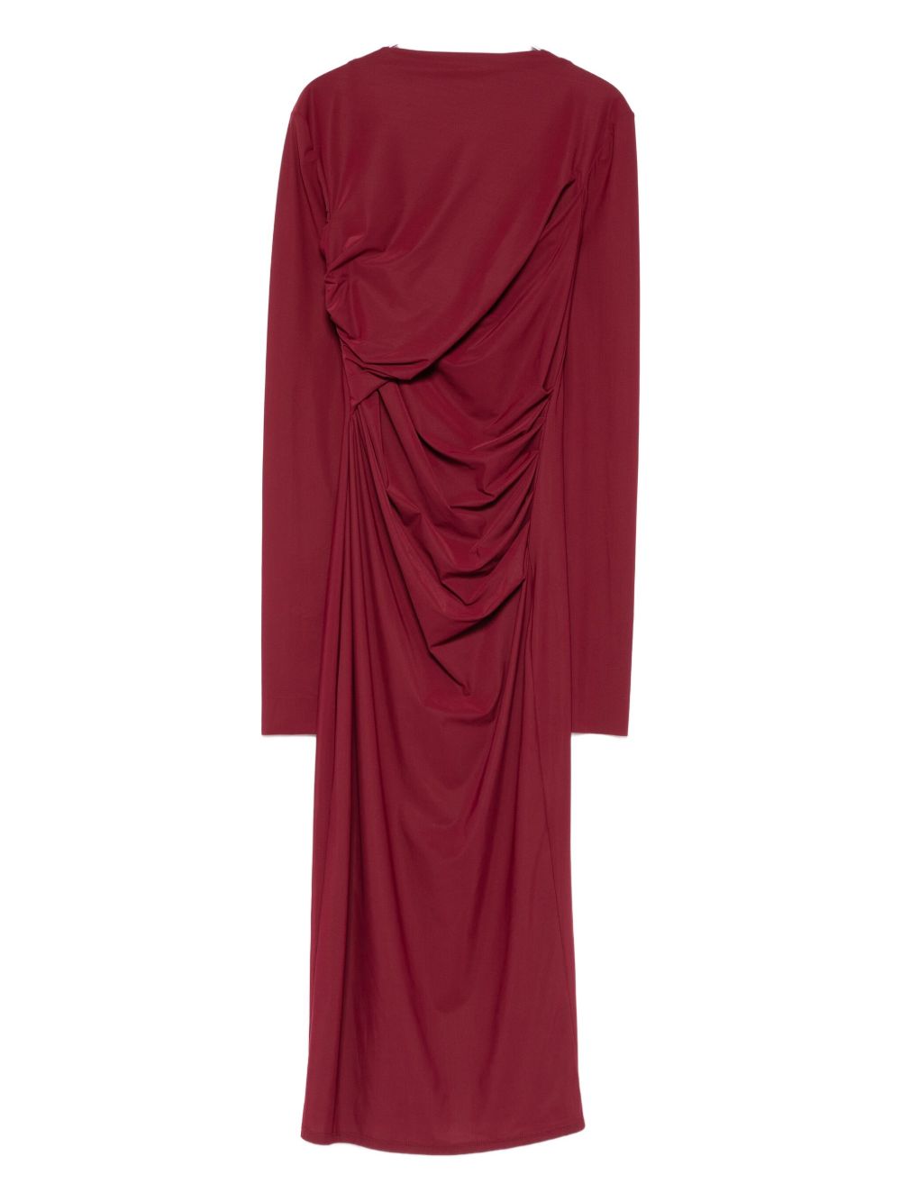 FRANCIS midi dress, made from stretch jersey that flows naturally over the body. Featuring long sleeves with raw edges and an asymmetrical draped bodice.