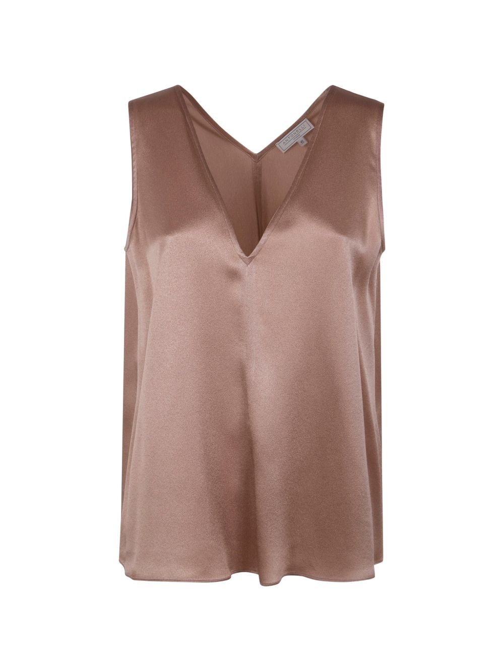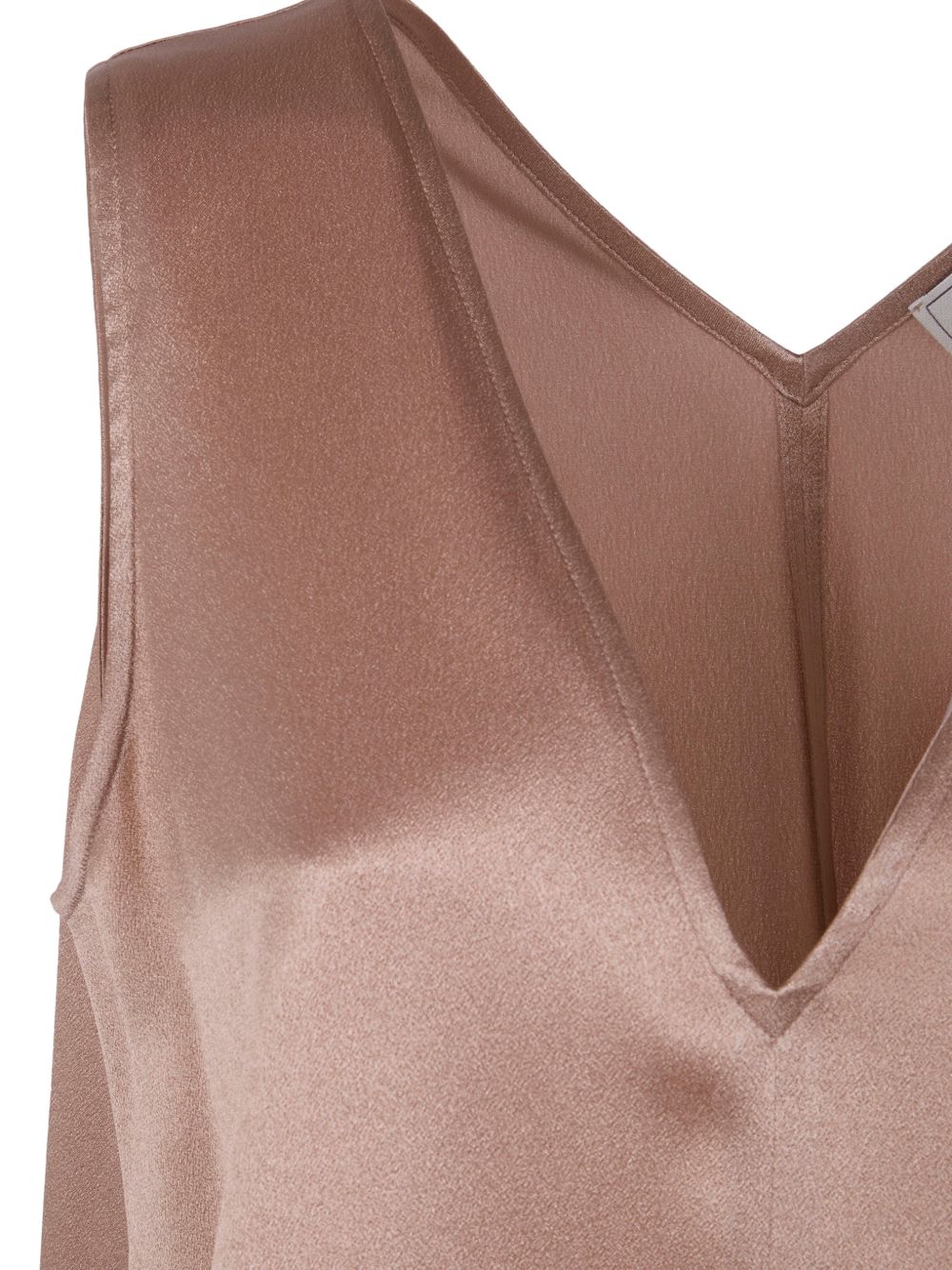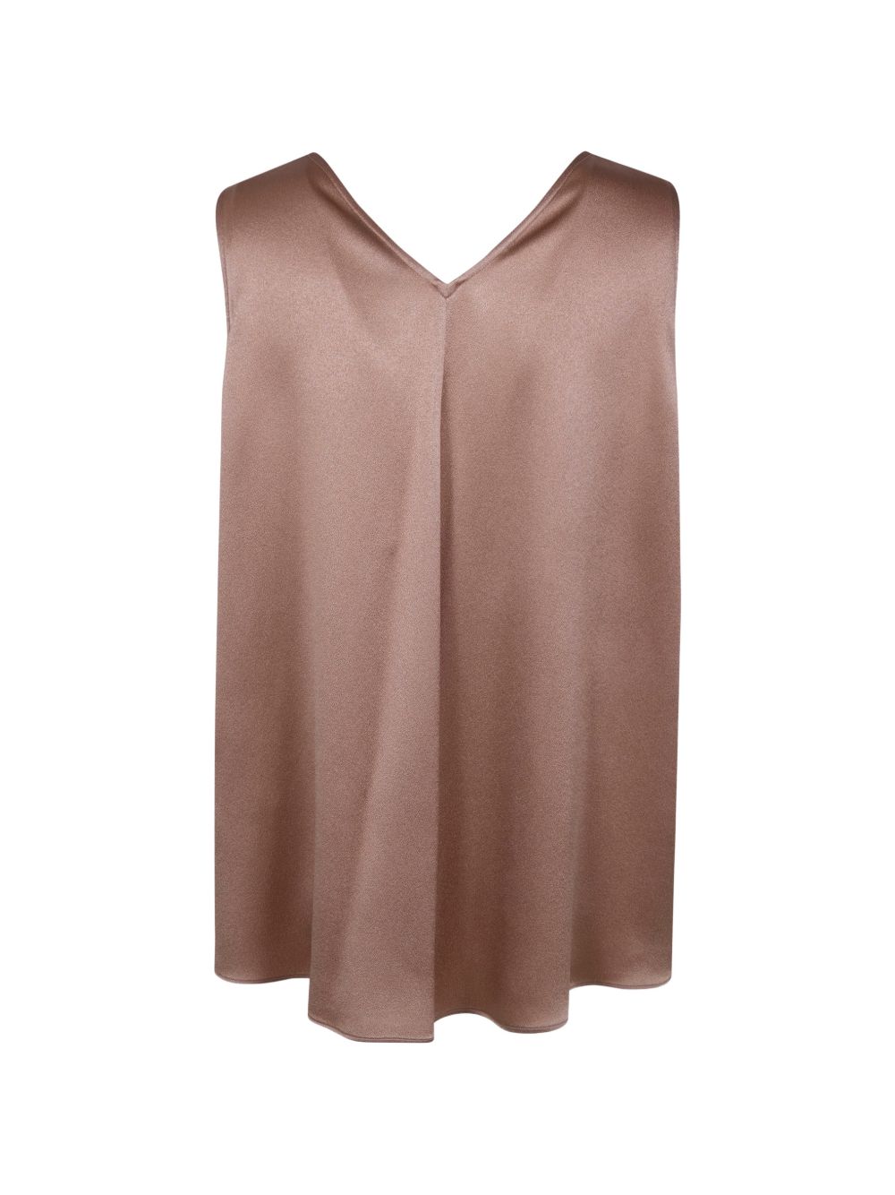 Camel-coloured viscose acetate top, V-neck, set-in sleeves