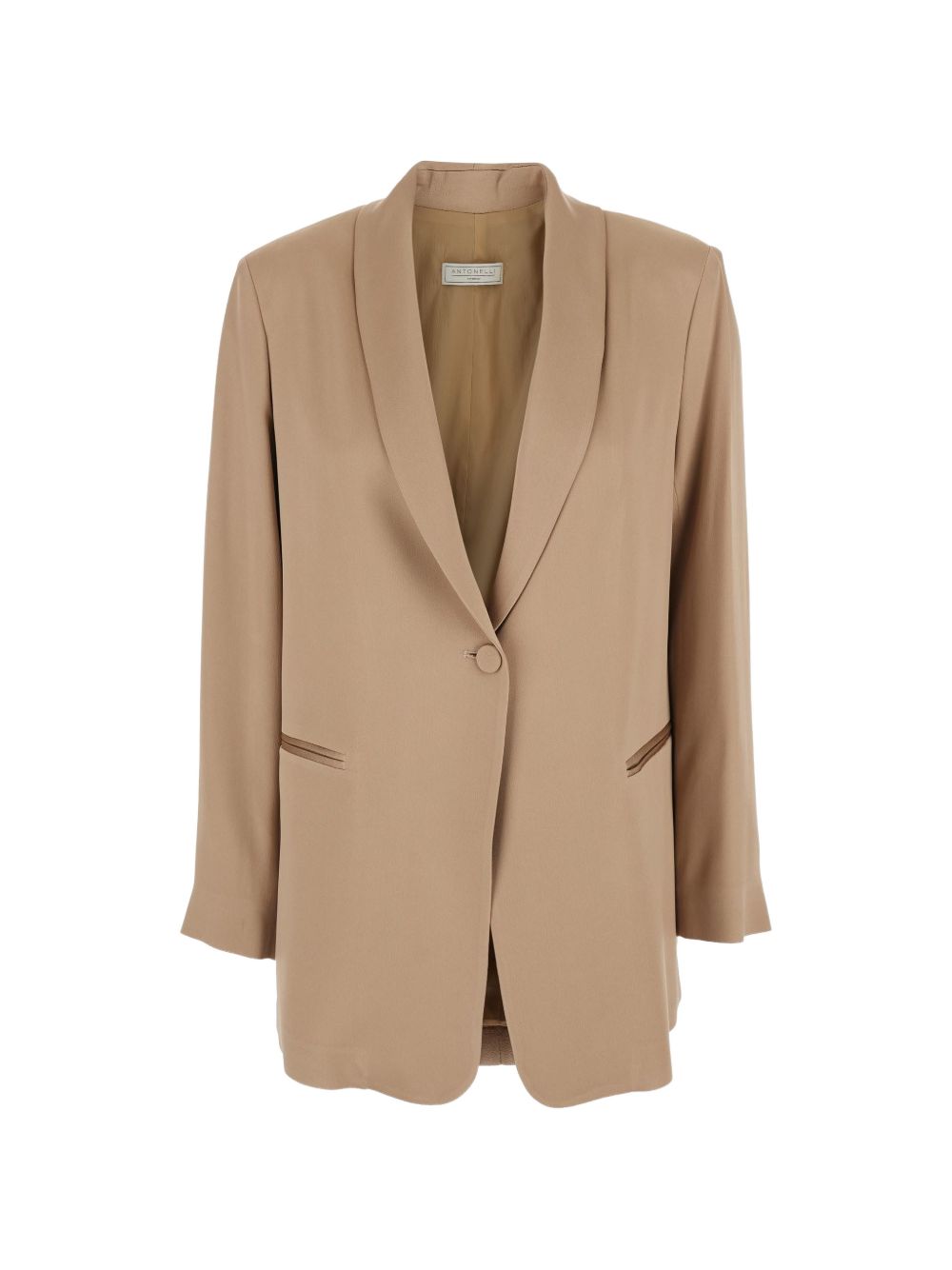 Camel-coloured acetate blazer, single-breasted, front button fastening, shawl collar