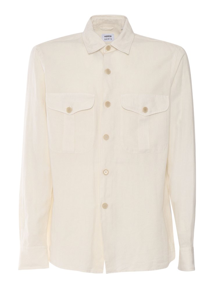Light beige cotton-linen shirt with a classic collar