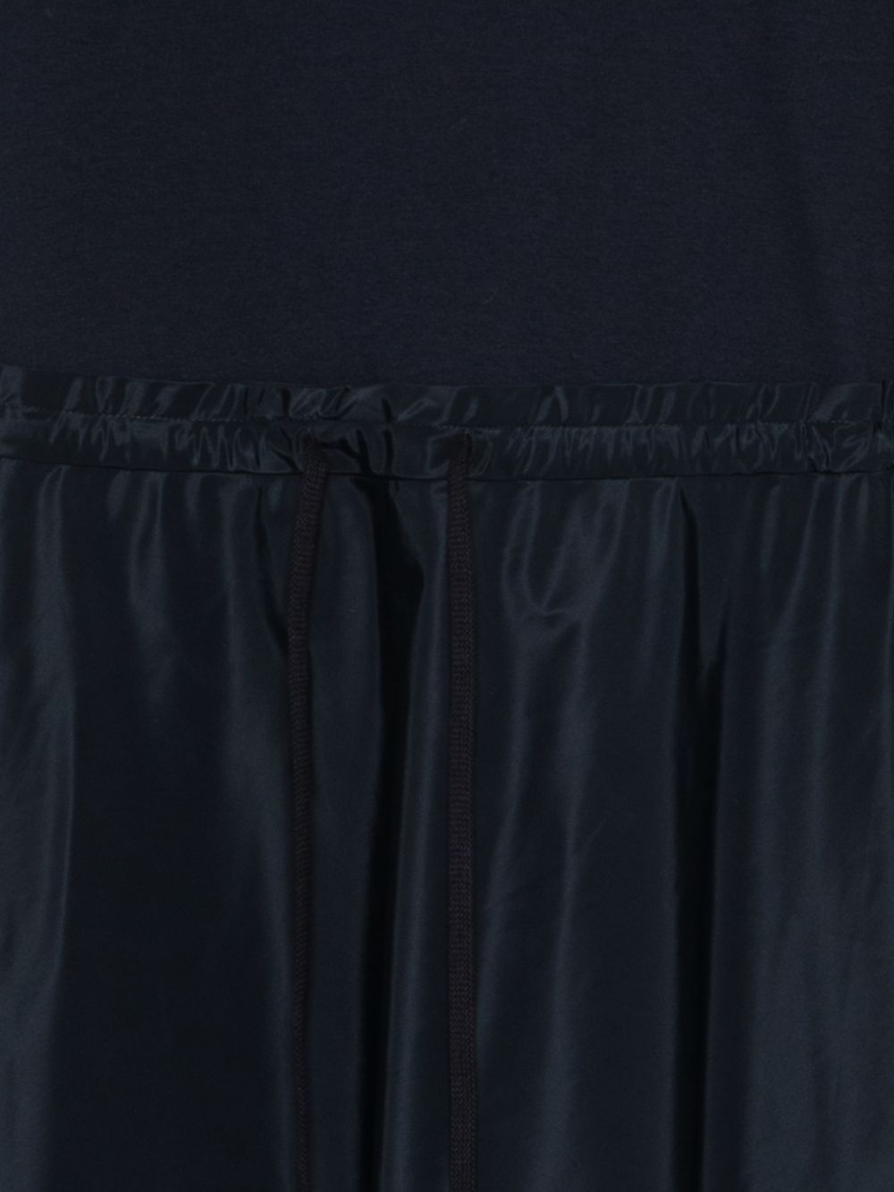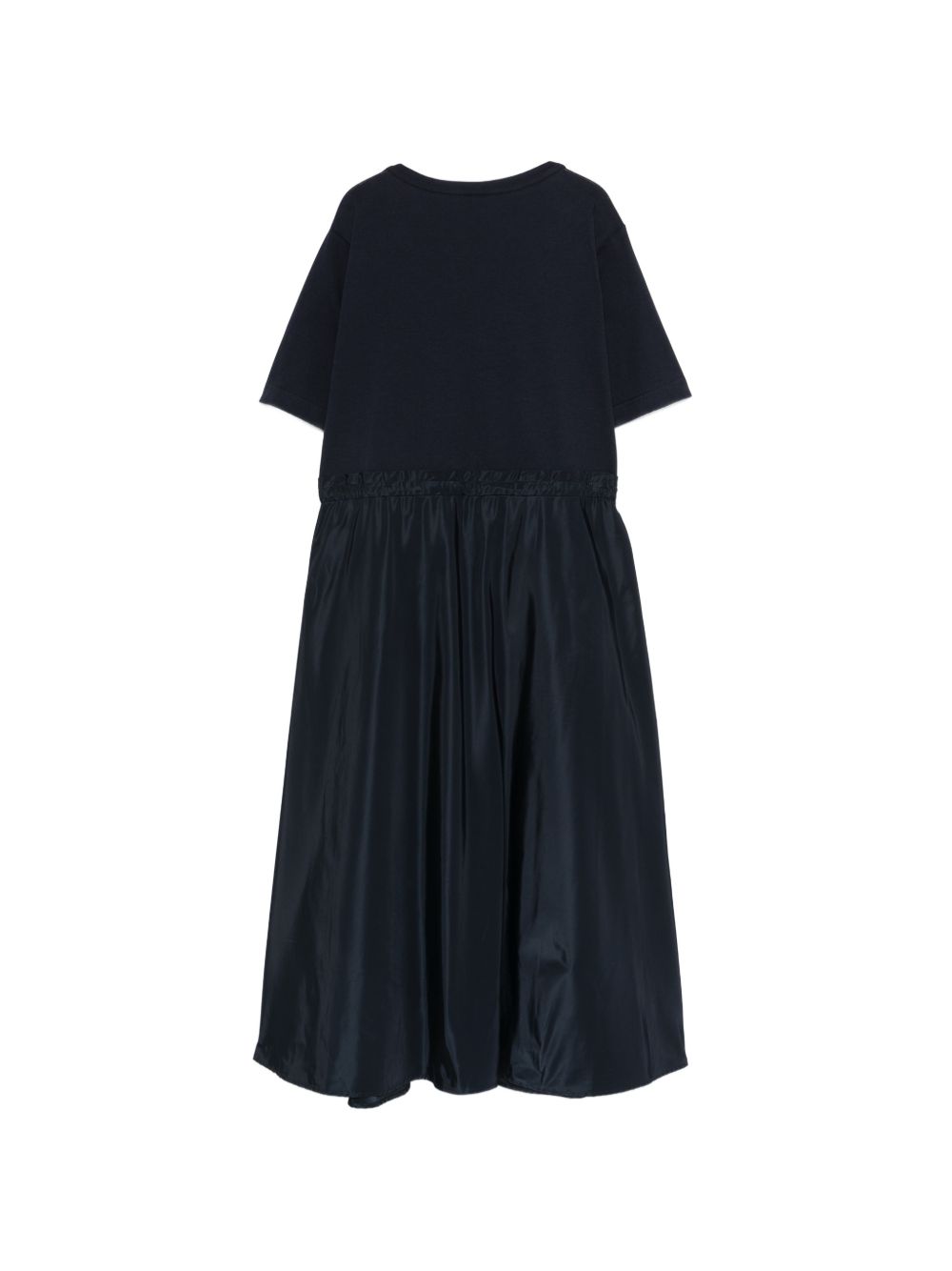 Blue cotton and nylon blend dress, flared skirt, short sleeves, crew neck, drawstring waist