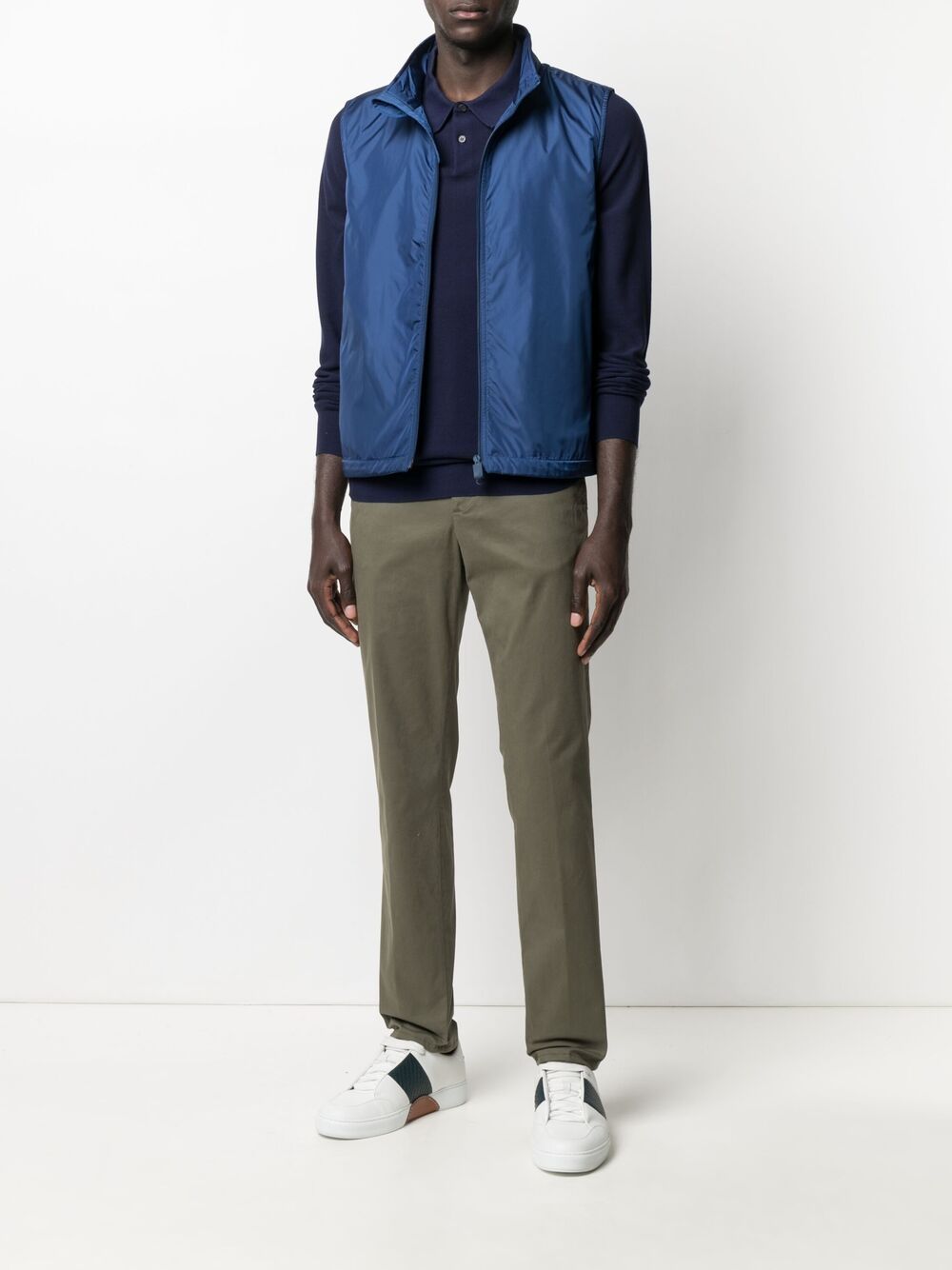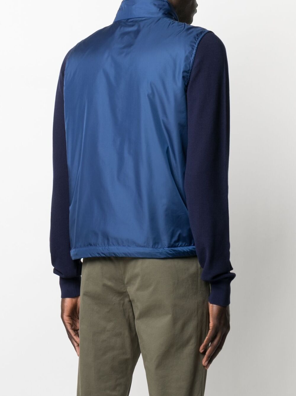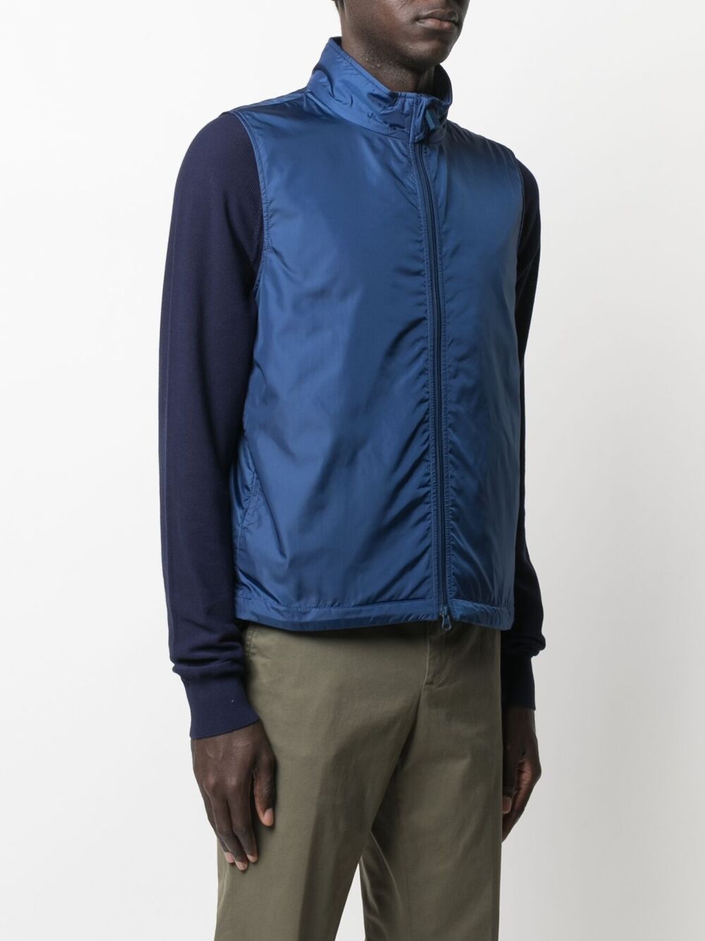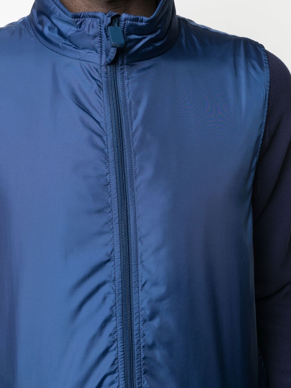 Blue nylon sleeveless vest, zip closure