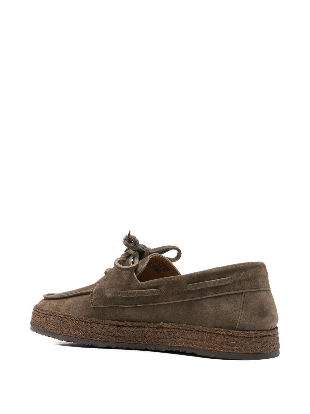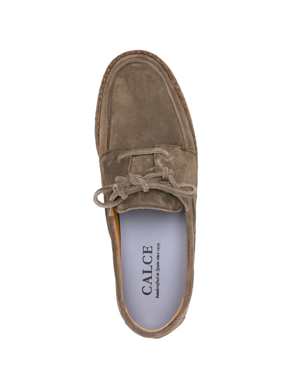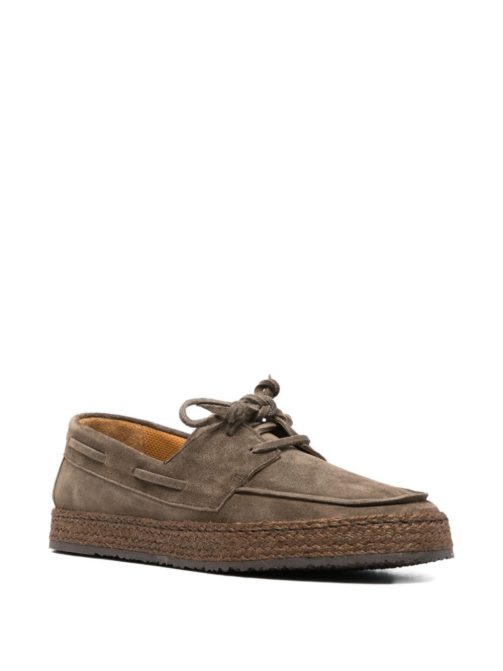 Khaki suede lace-ups, lace-up fastening, rounded toe, rope sole