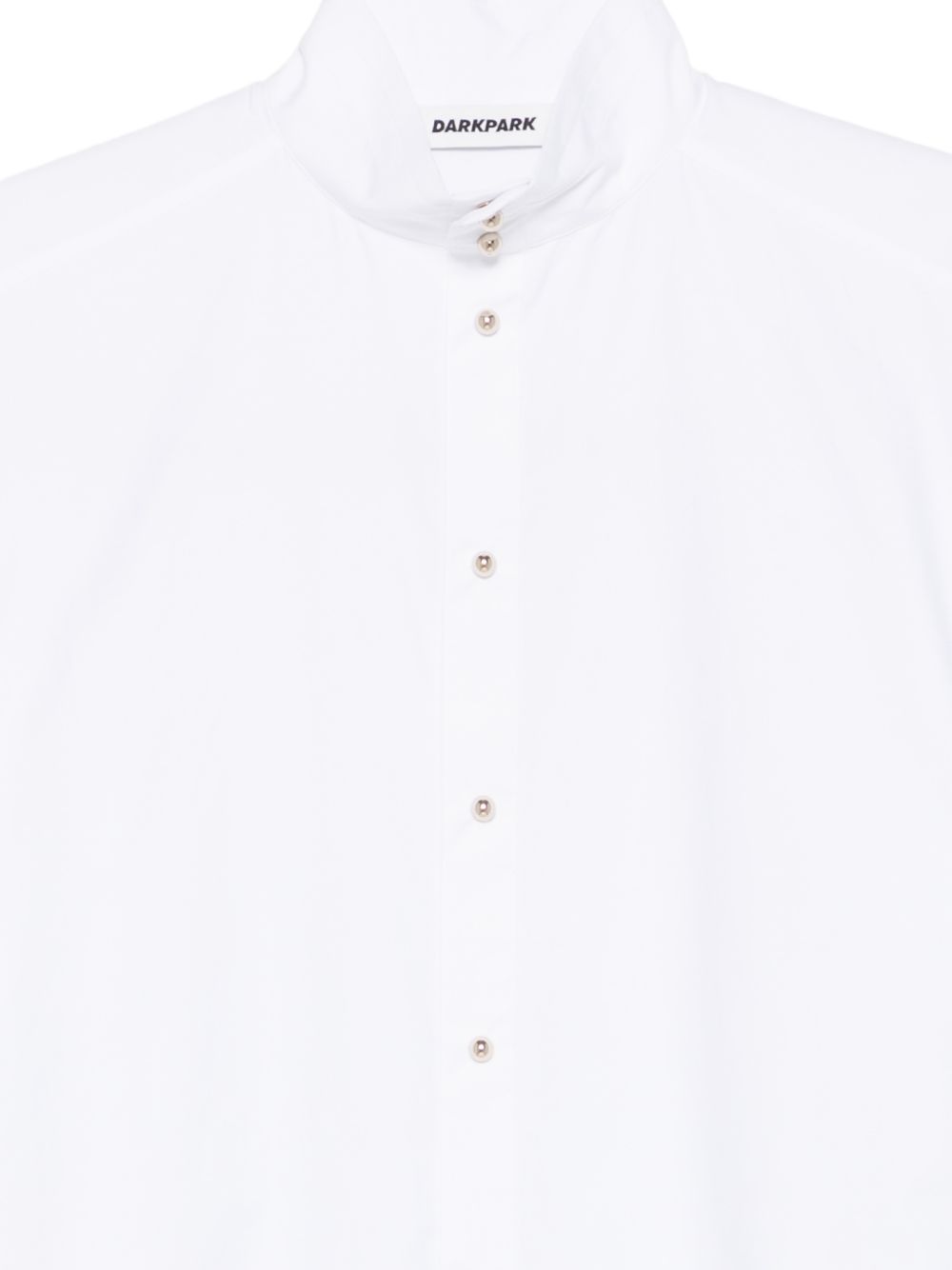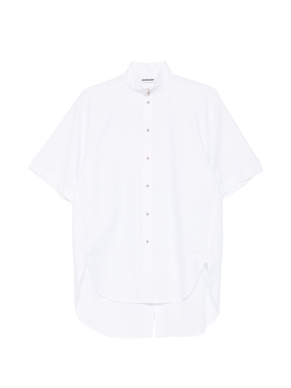 White cotton poplin shirt, oversized fit, button closure, stand-up collar, short sleeves