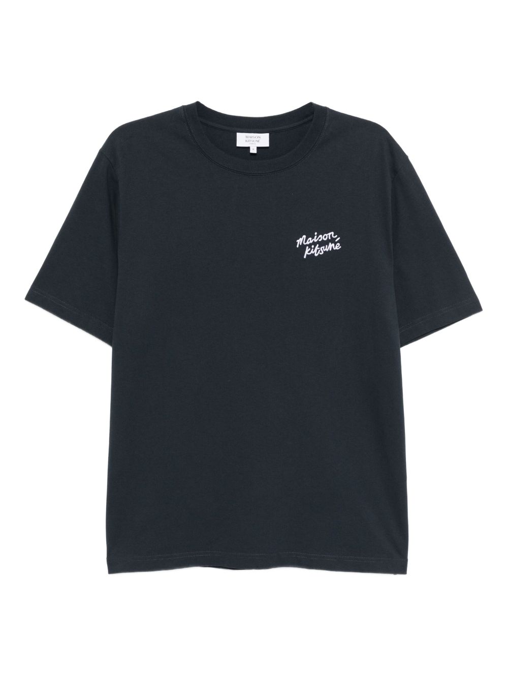 Blue cotton jersey T-shirt, crew neck, embroidered logo on the chest