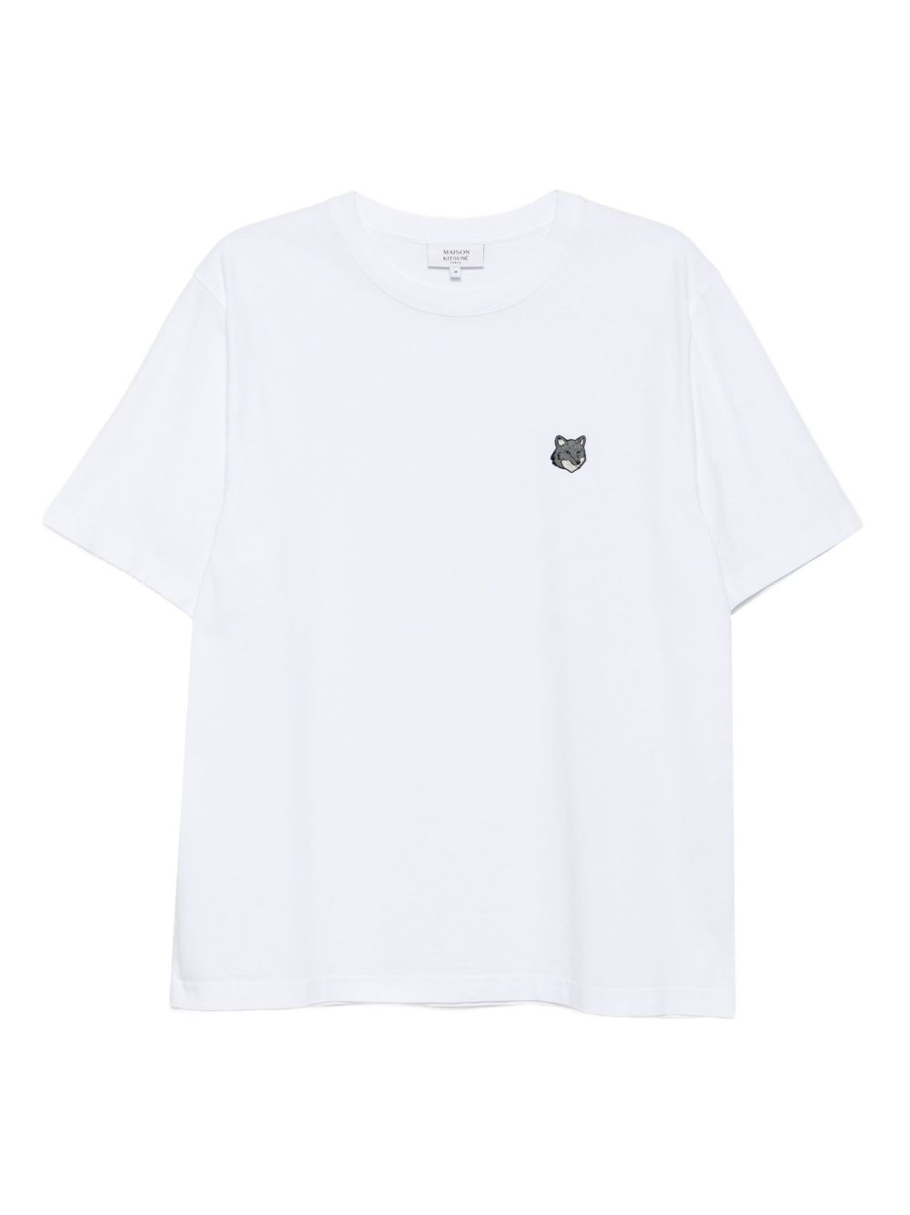 White cotton jersey T-shirt, crew neck, fox logo on the chest