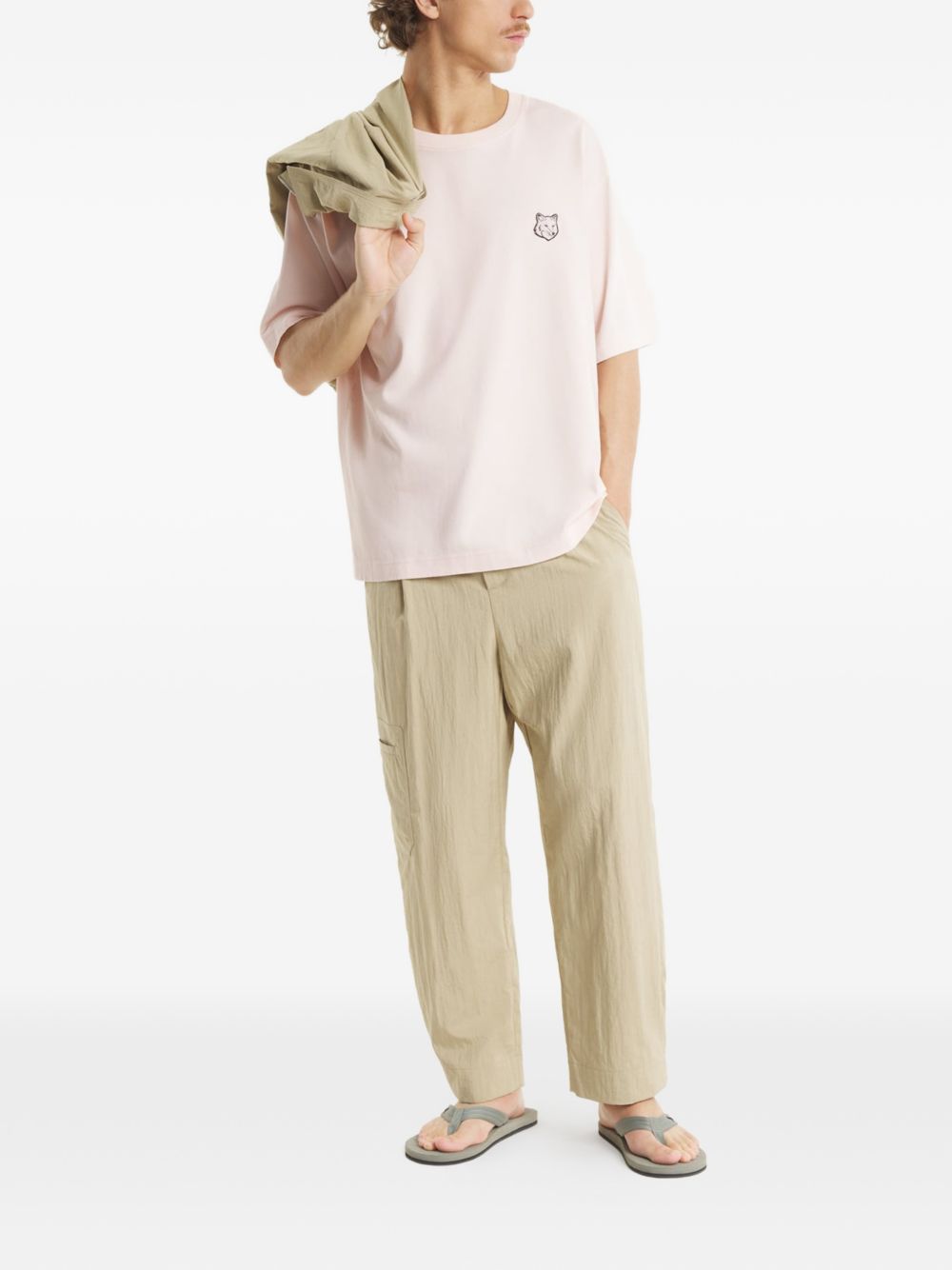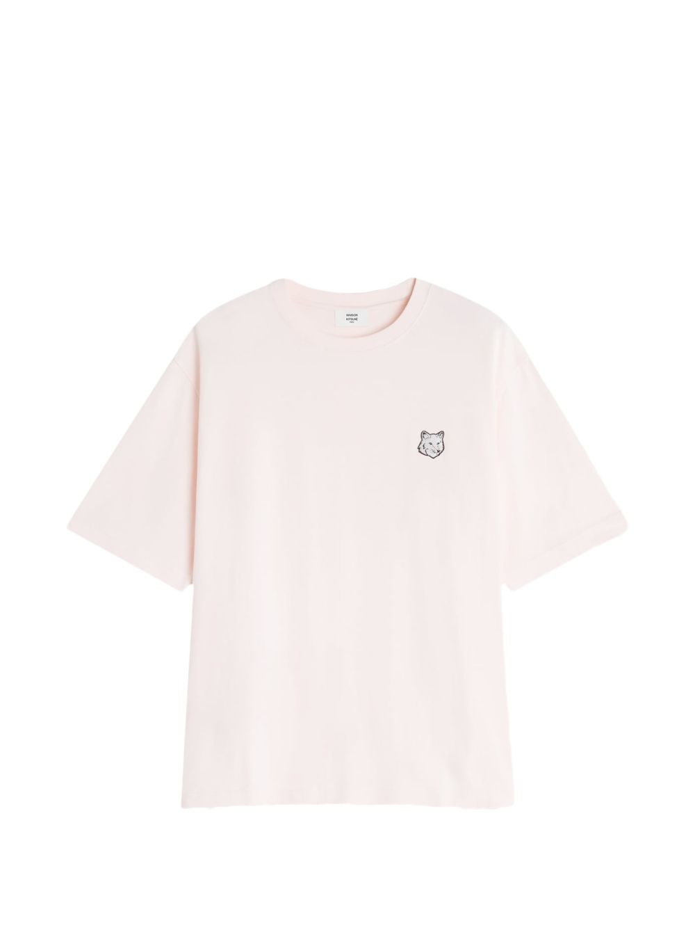 Powder pink cotton jersey T-shirt, crew neck, fox logo on the chest