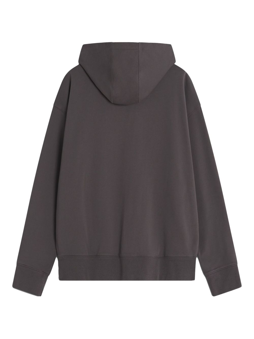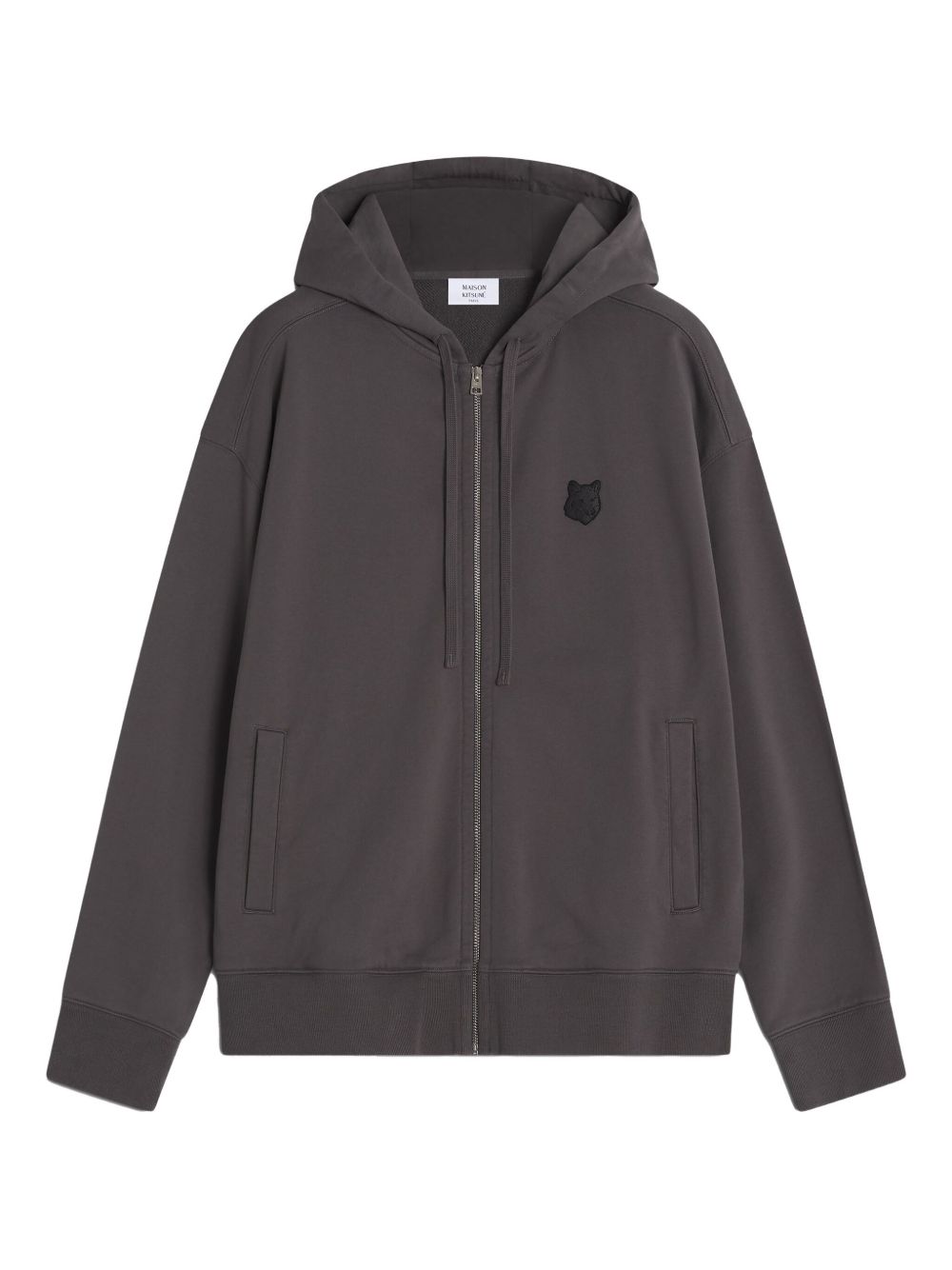 Dark gray cotton sweatshirt, hood, vertical pockets, front zip, fox appliqu? on the chest