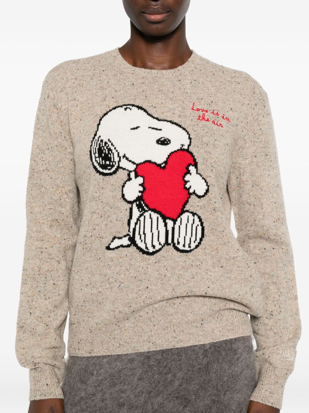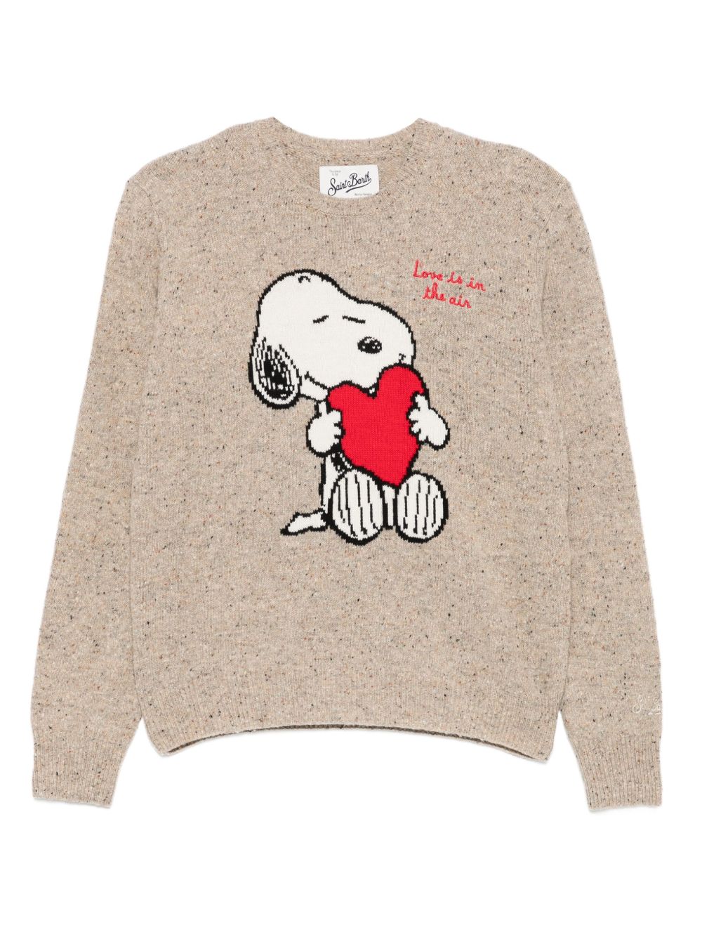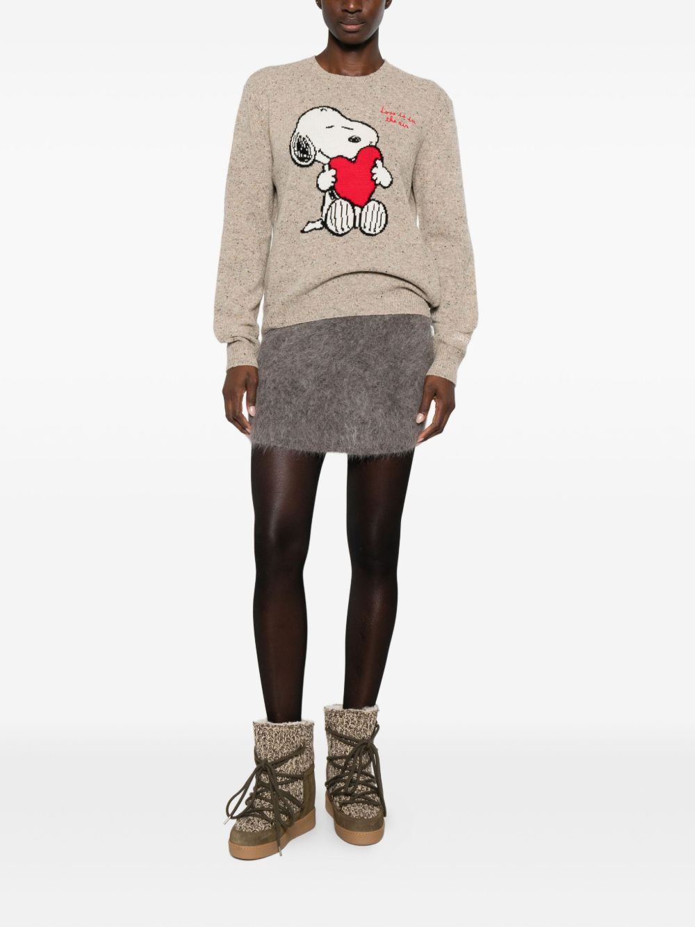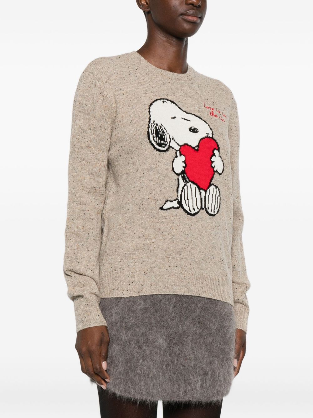 Crew neck sweater in Donegal wool, beige melange color, Snoopy print