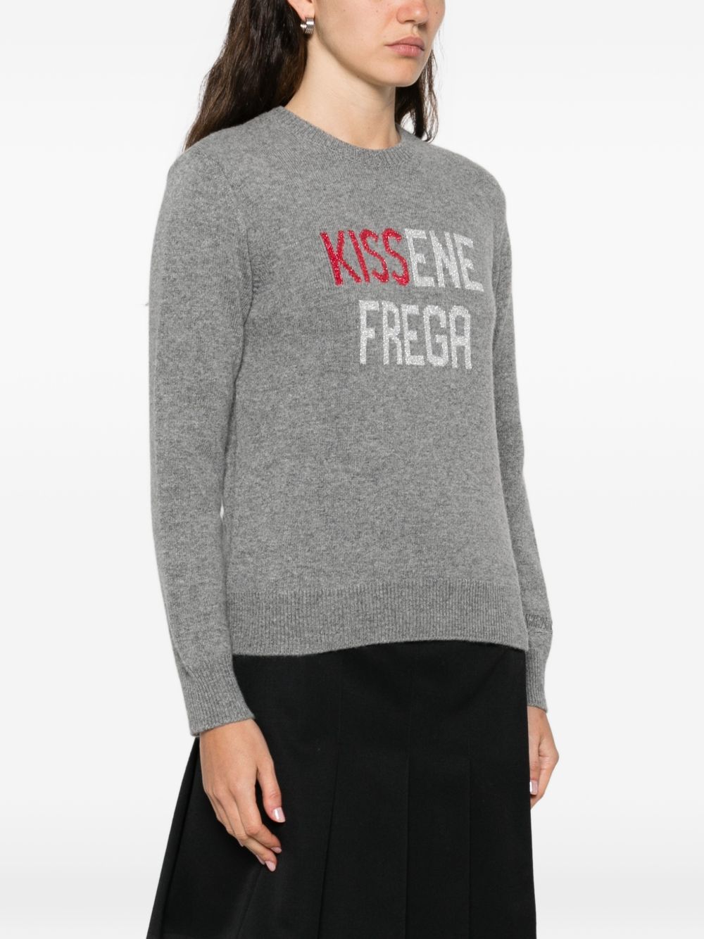 Grey cashmere wool crew neck sweater, Kissene Frega embroidery, long sleeves