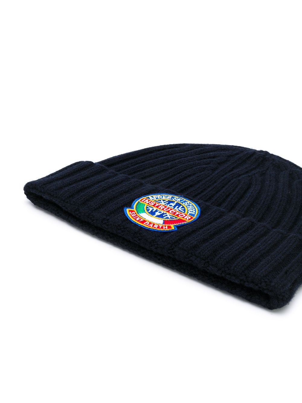 Blue ribbed wool cap with embroidery on the front