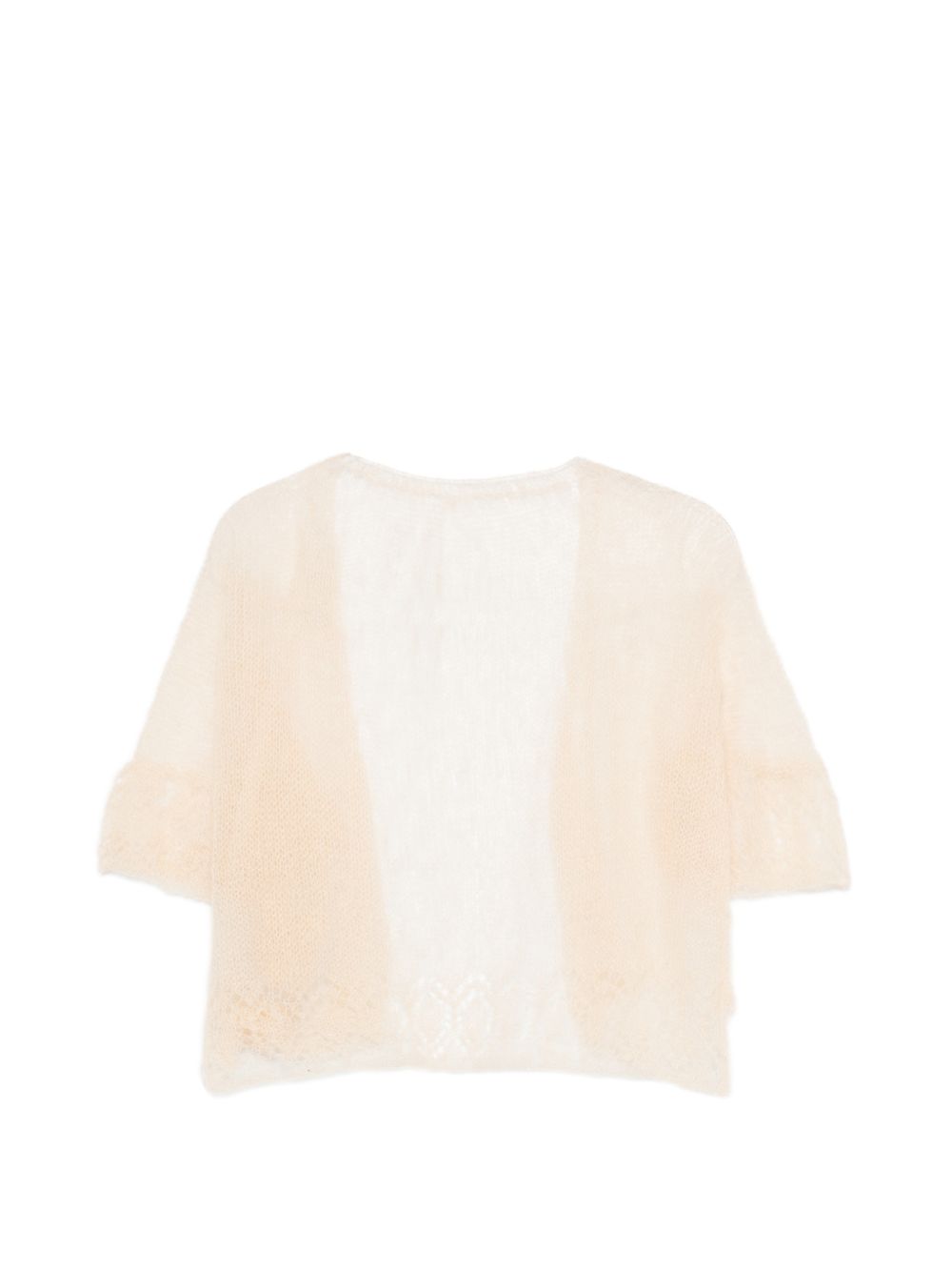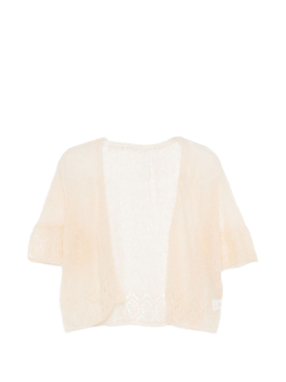 Lightweight beige wool-blend cardigan, open-front, cropped, with 3/4-length sleeves