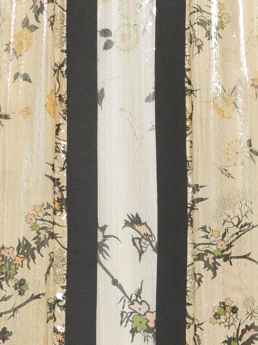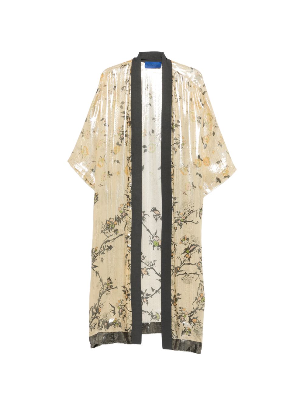 Gold silk kimono with a floral print and contrasting trim
