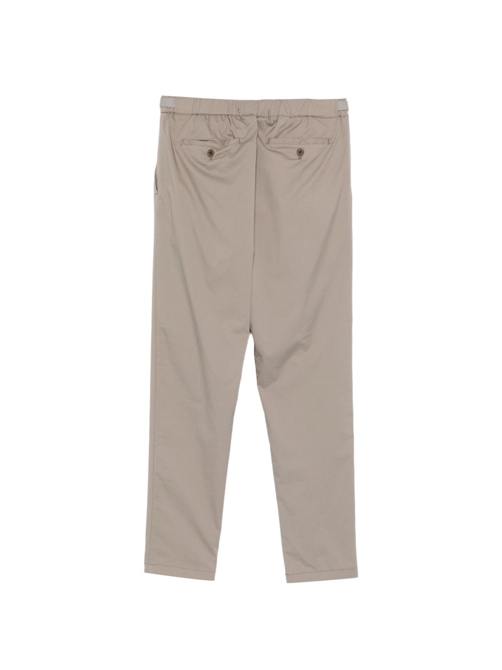 Taupe cotton poplin trousers, elasticated back waistband, slanted pockets