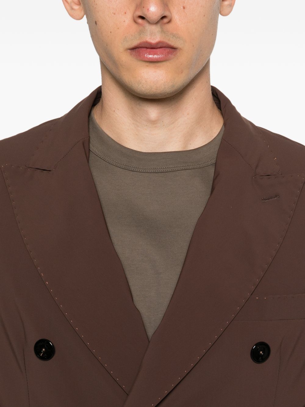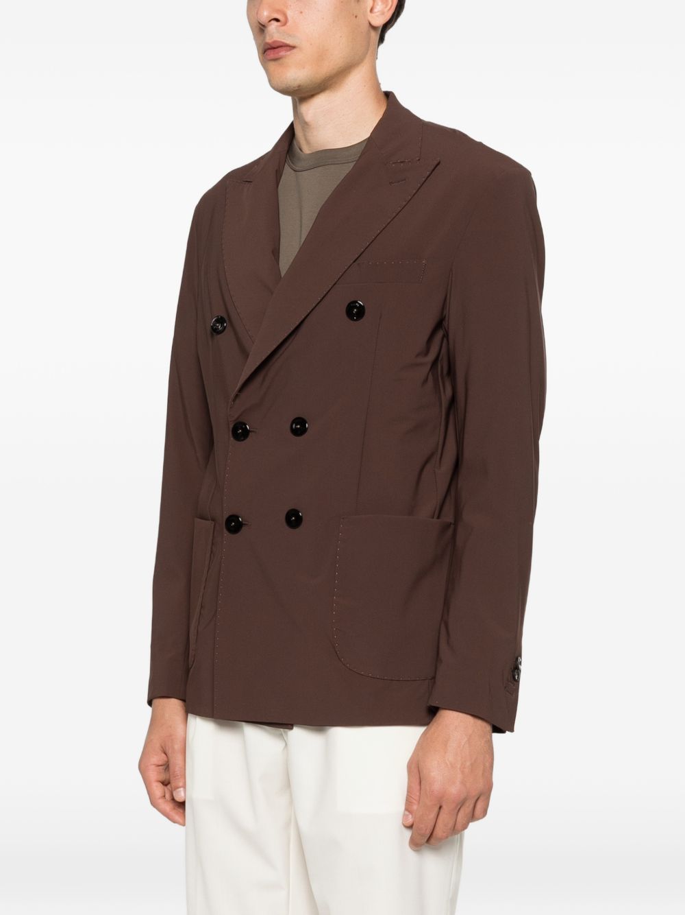 Dark brown double-breasted Lycra jacket with classic lapels and two front pockets