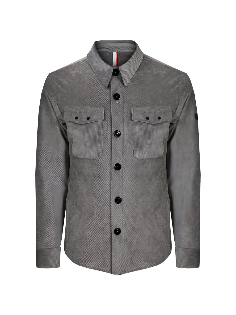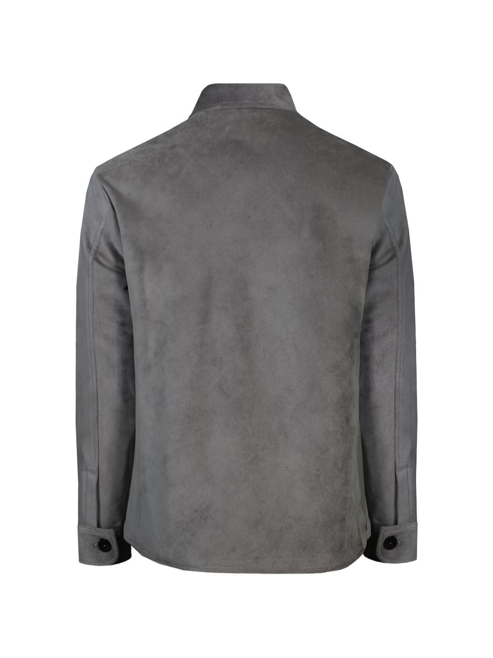 Grey velvet shirt jacket, button closure, chest pockets