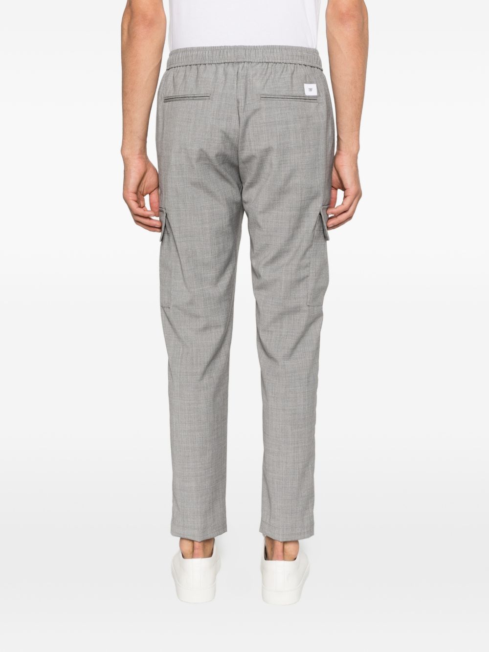 Light gray wool-blend trousers with a drawstring waist and large side pockets