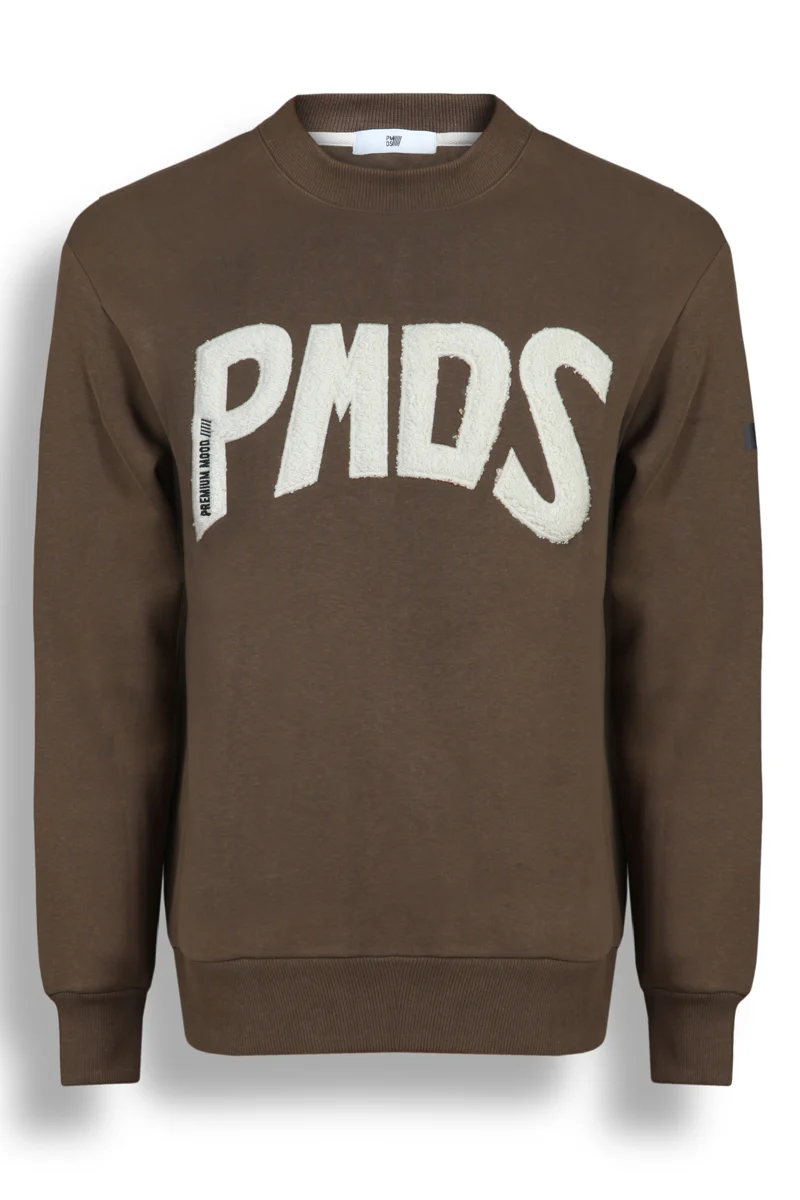 Brown brushed cotton sweatshirt with terry cloth logo print on the chest