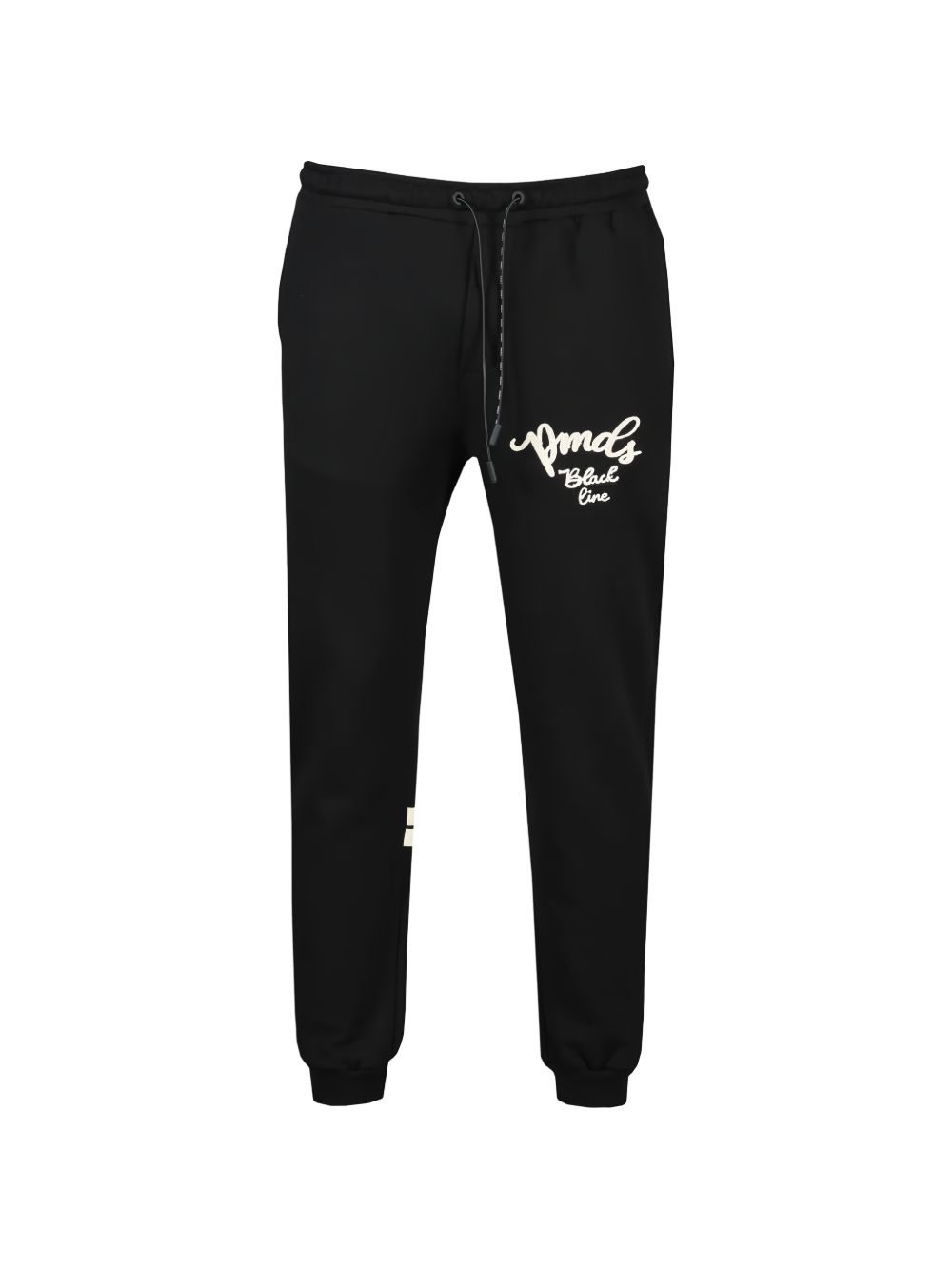 Black cotton sweatshirt pants, drawstring waist, embroidery on the front