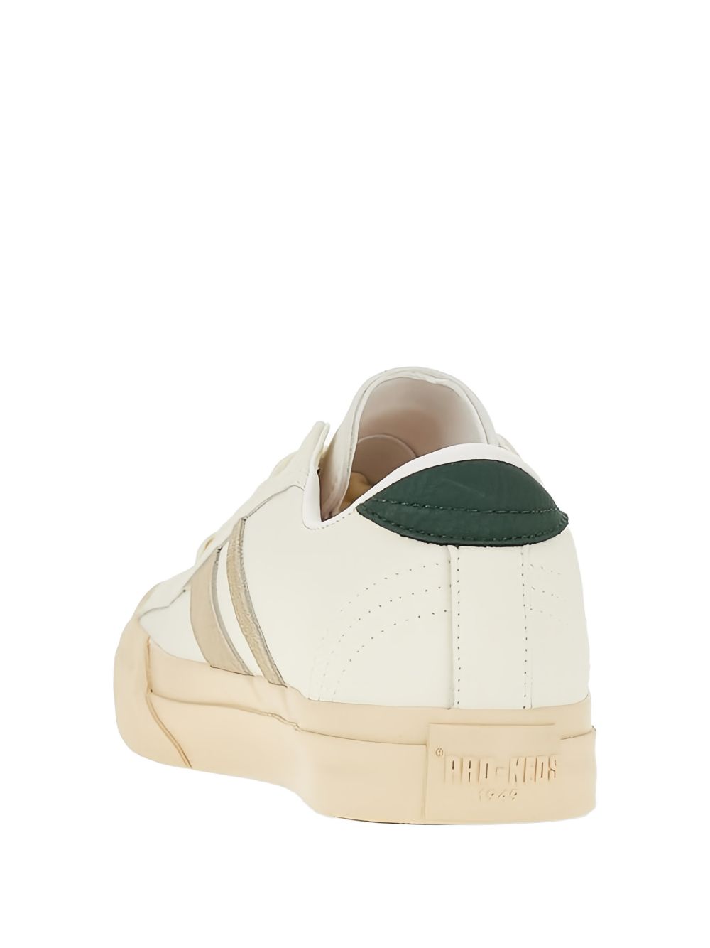 Sneakers in ivory leather embellished with leather inserts. Leather lining, internal elastic band. Rubber sole