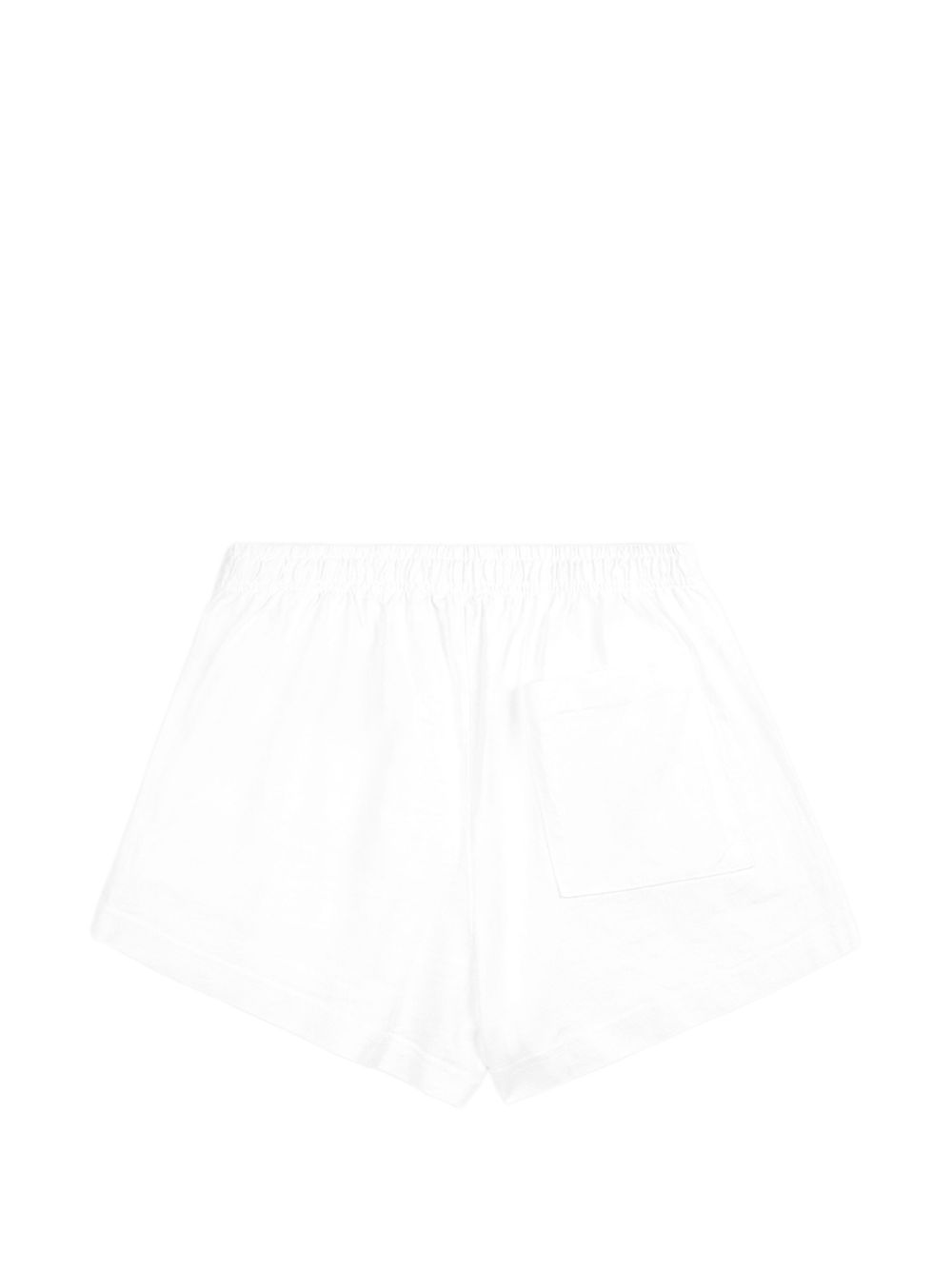 White cotton shorts, contrasting logo embroidery, elastic waistband