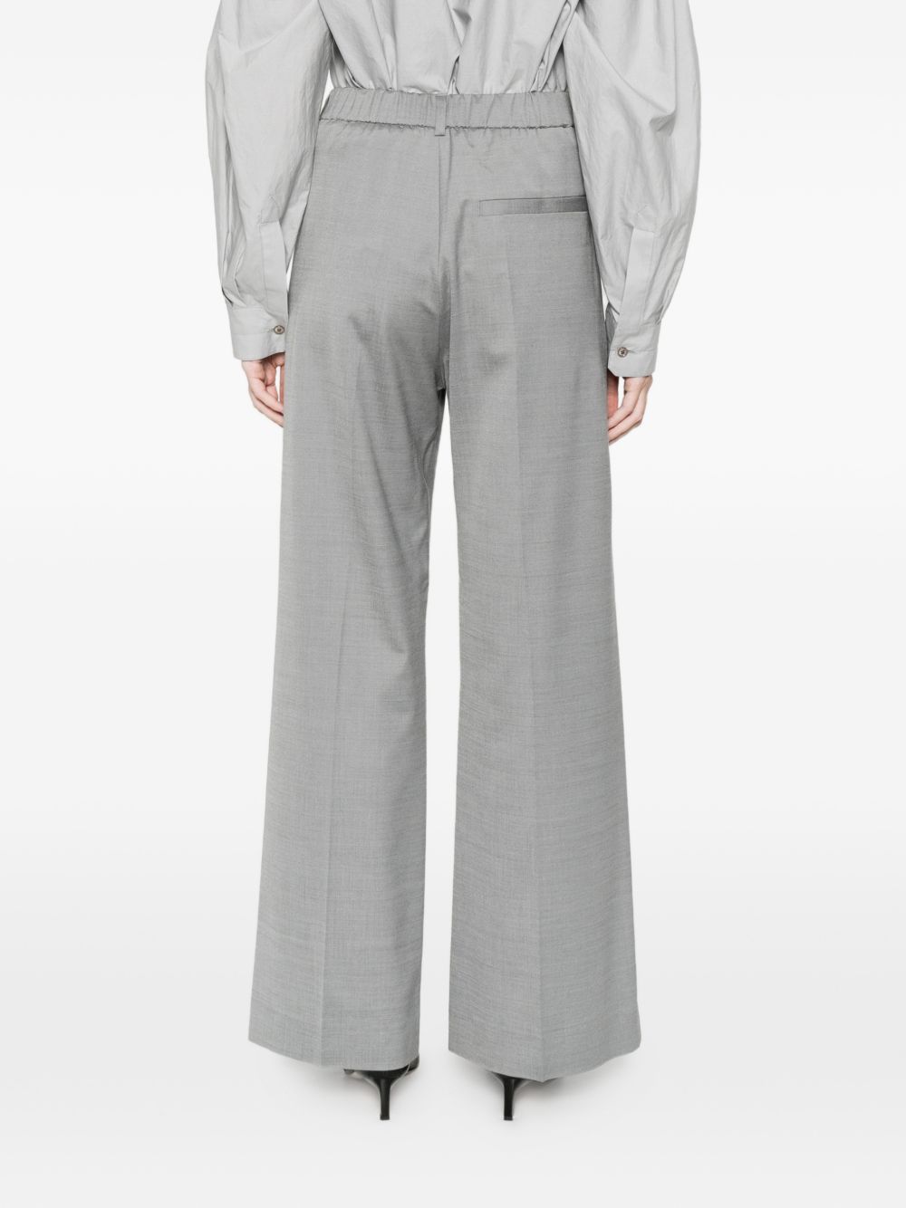 Cool light gray wool trousers, wide leg, elasticated back
