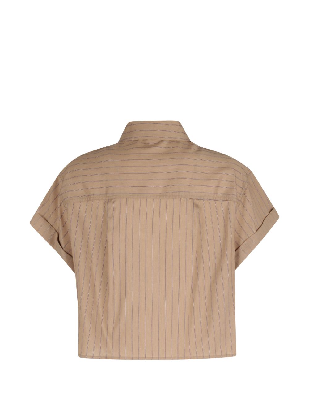 Beige striped lyocell cotton shirt, cropped style, short sleeves