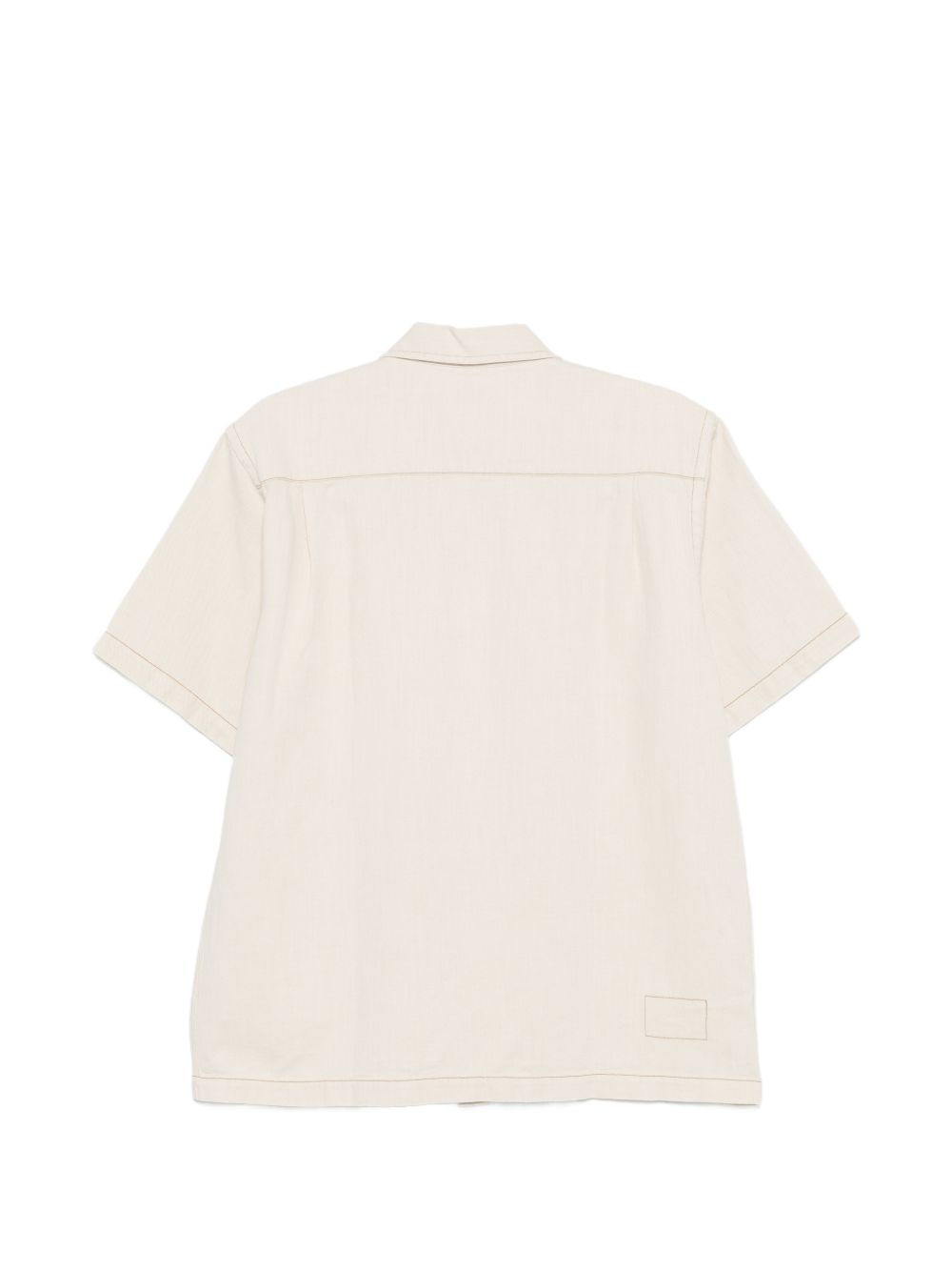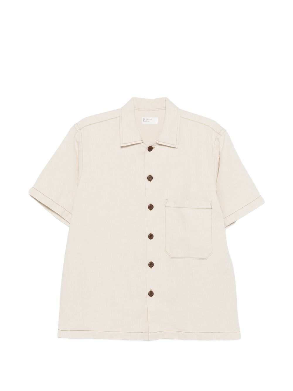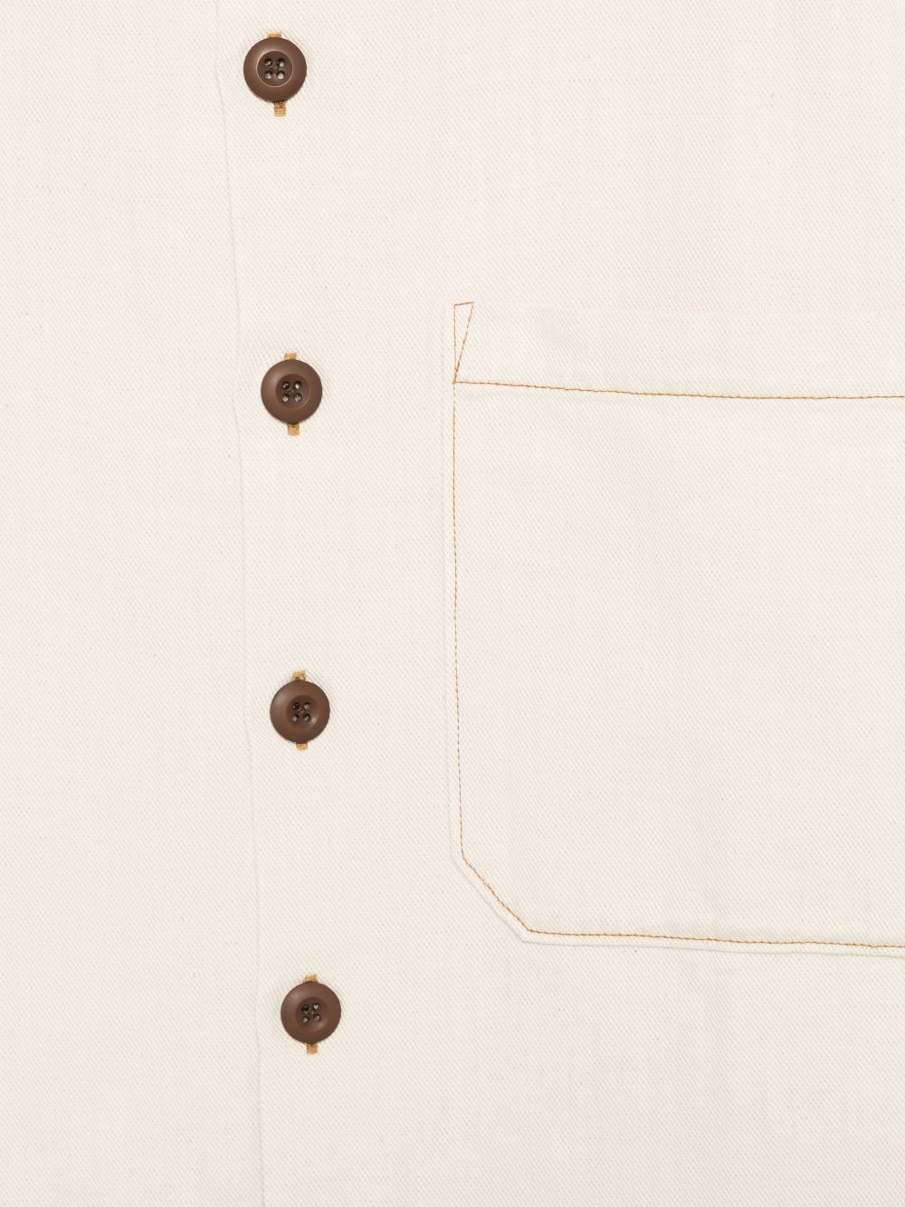 Ecru Boxi-style shirt, cotton-linen blend, classic collar, contrast stitching