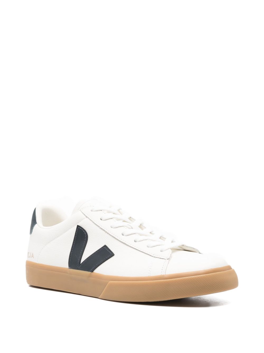 White/blue sneakers in hammered calfskin leather, contrasting side patch logo, embossed logo on tongue, round toe, lace-up closure