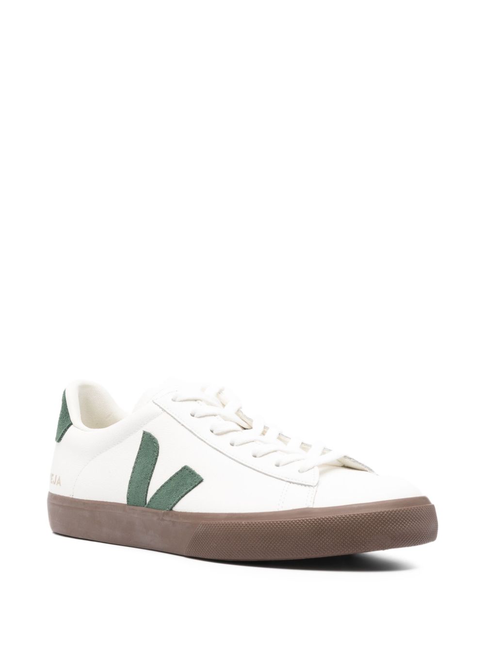 White/green sneakers in hammered calf leather, contrasting side patch logo, embossed logo on tongue, round toe, lace-up closure