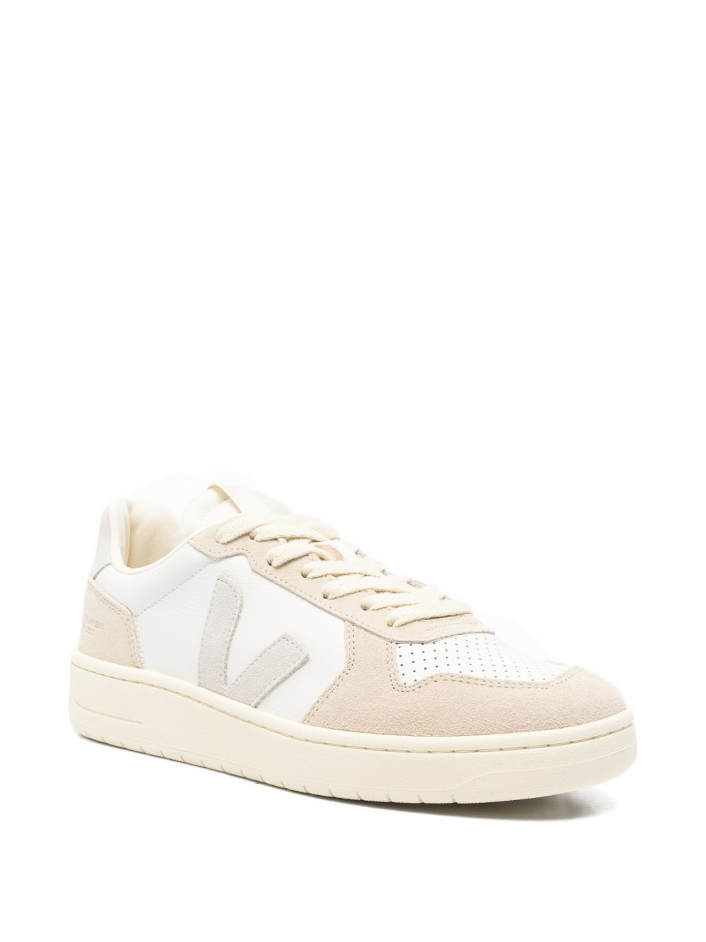 Calfskin sneakers, round perforated toe, lace-up closure, logo patch on the tongue, ribbed rubber sole, suede detailing