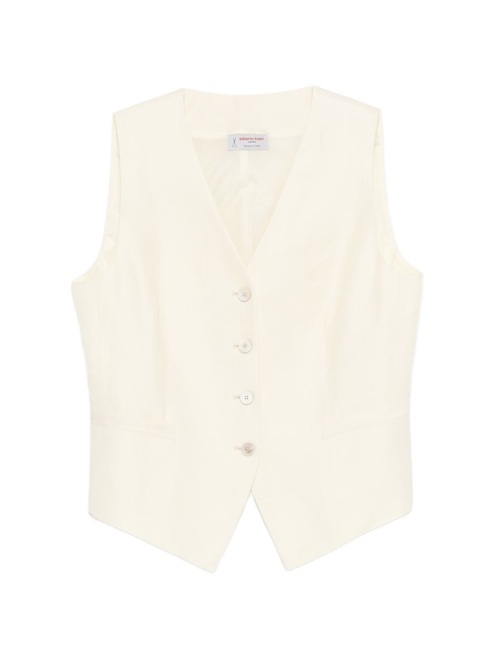 Gilet in lino viscosa burro, scollo a V, chiusura con bottoni