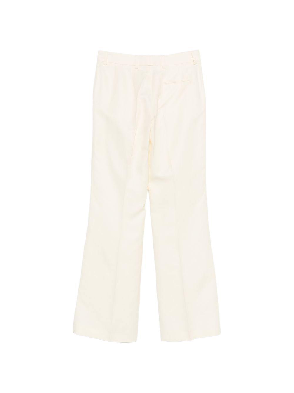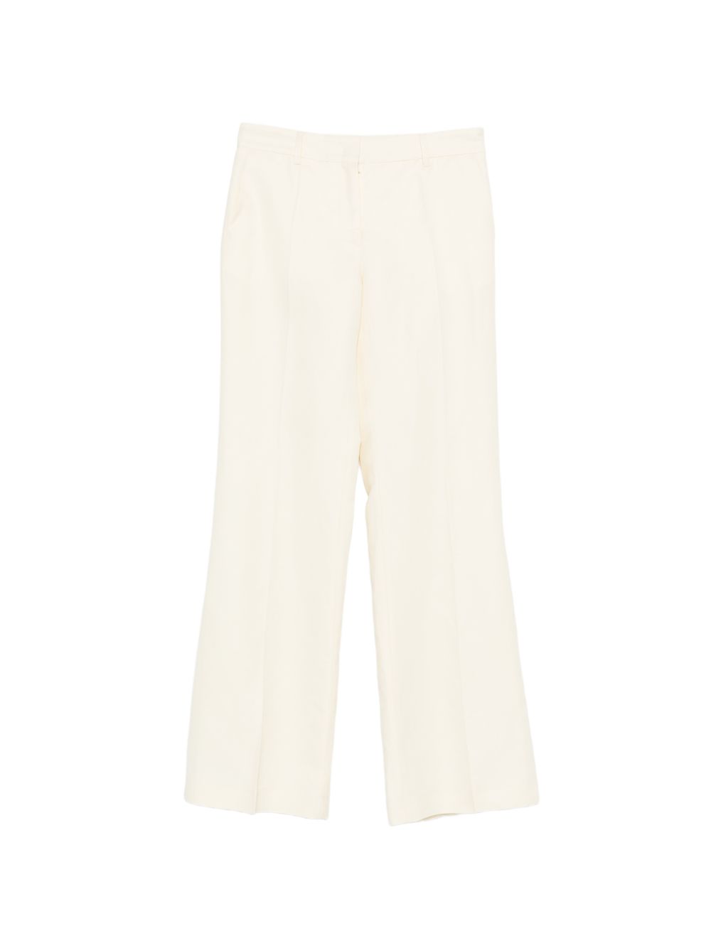 Pantalone in lino viscosa burro, modello palazzo, chiusura con zip e bottone