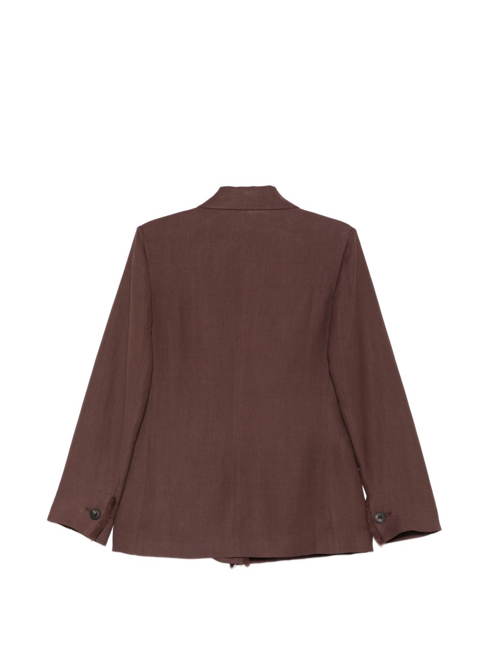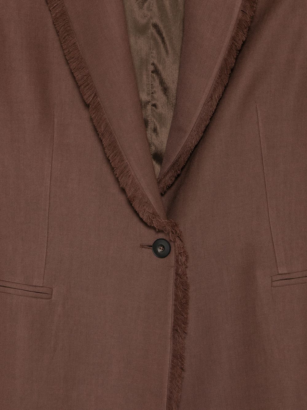 Giacca in lino viscosa marrone, chiusura con 1 bottone, petto a bavero, orlo sfrangiato