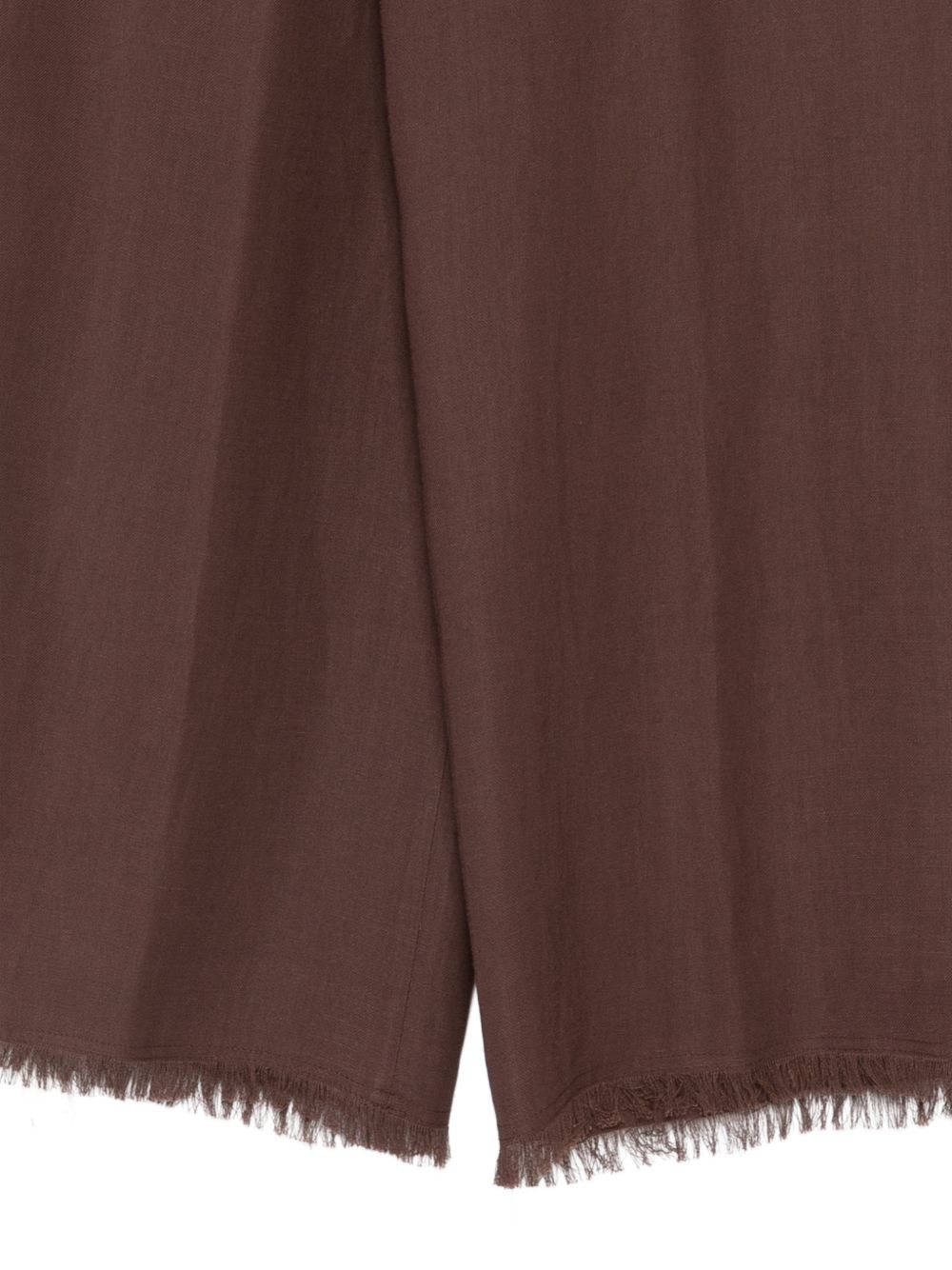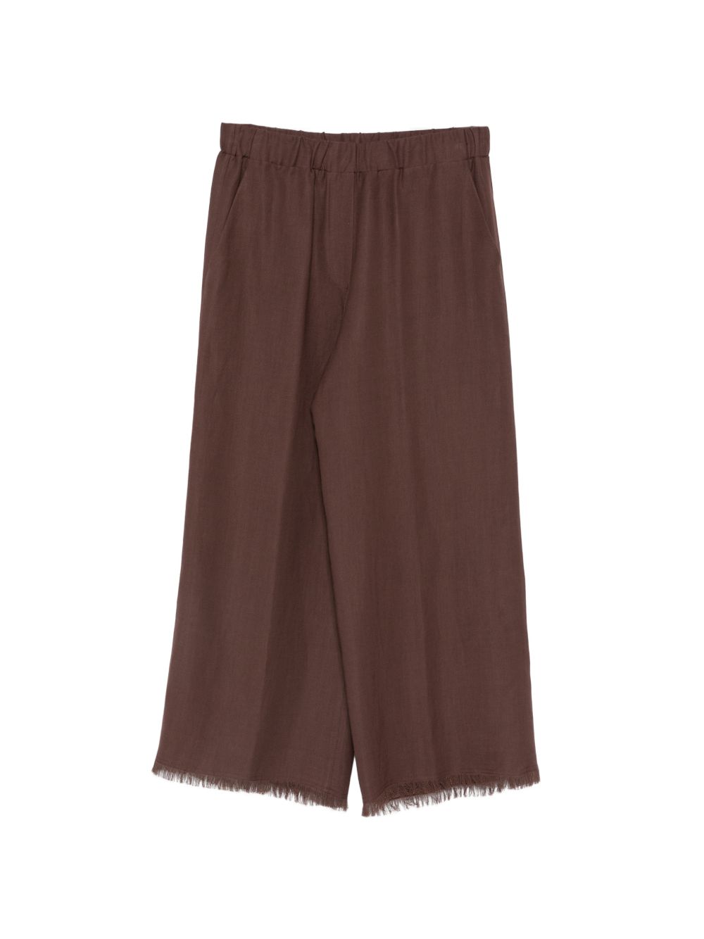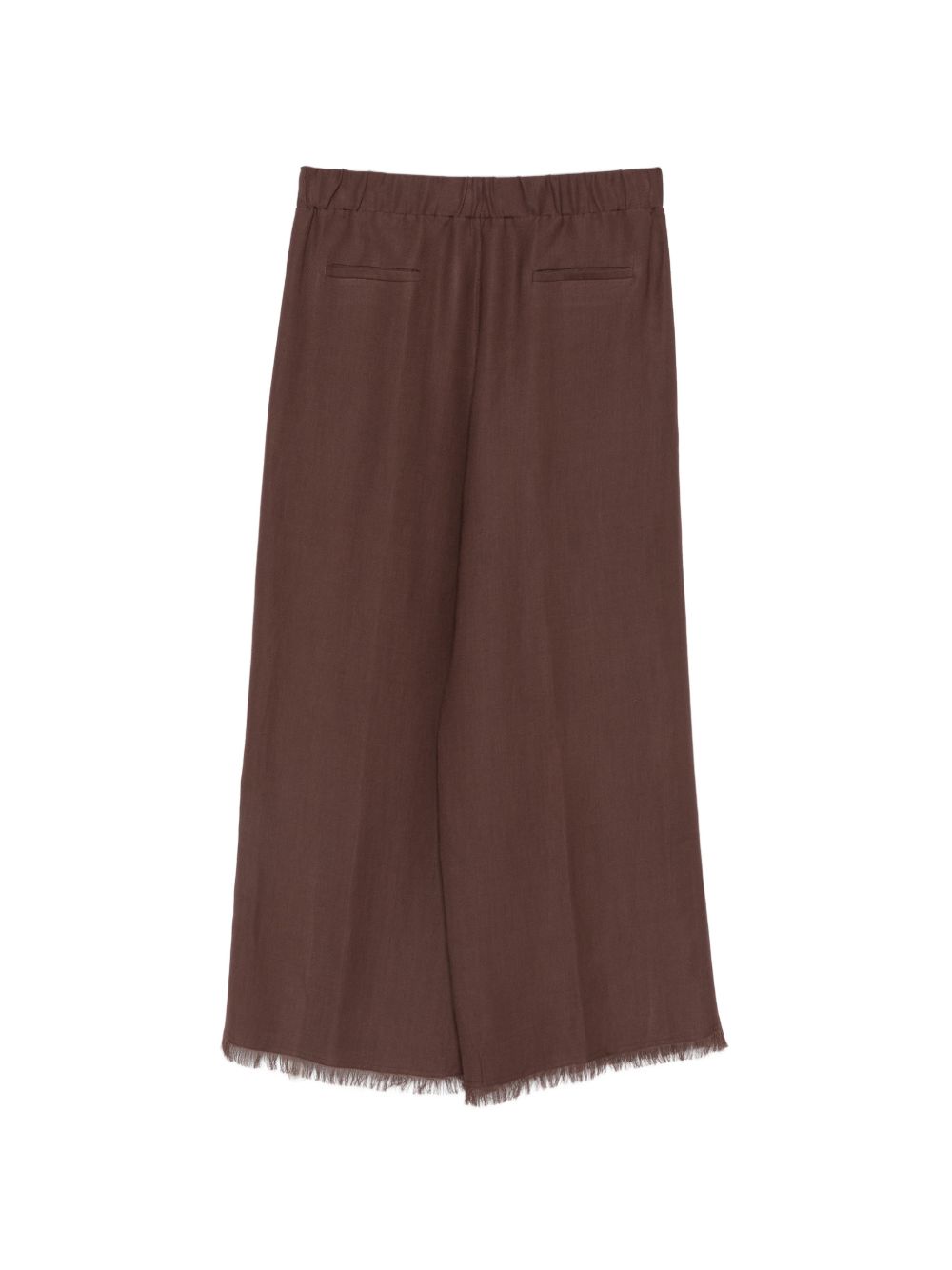 Pantalone in lino viscosa marrone, elastico in vita, gamba dritta, orlo sfrangiato