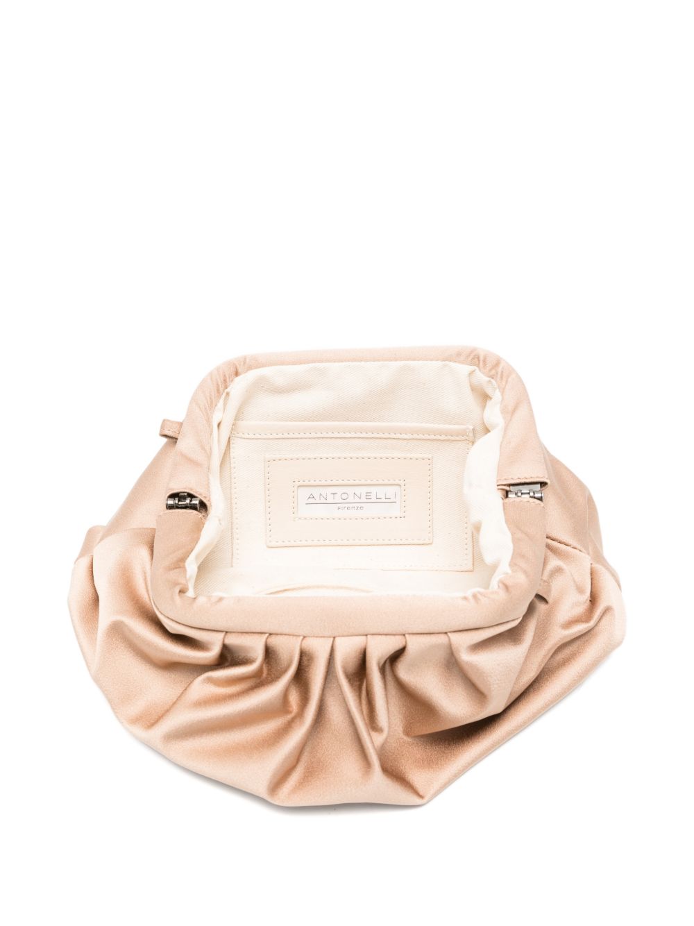 Pochette cadi acetato beige, drappeggiata, modello stondato