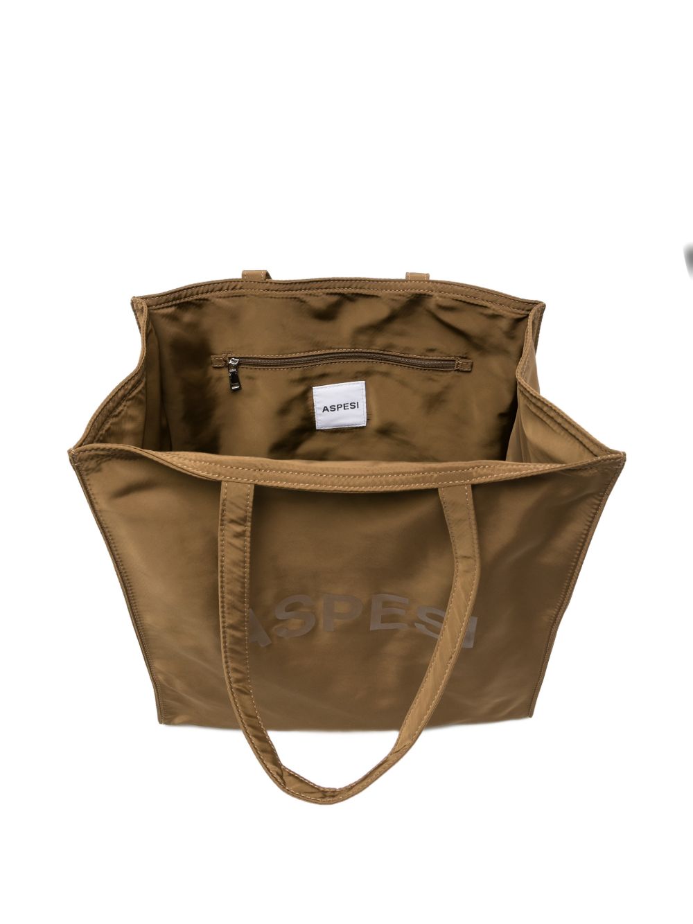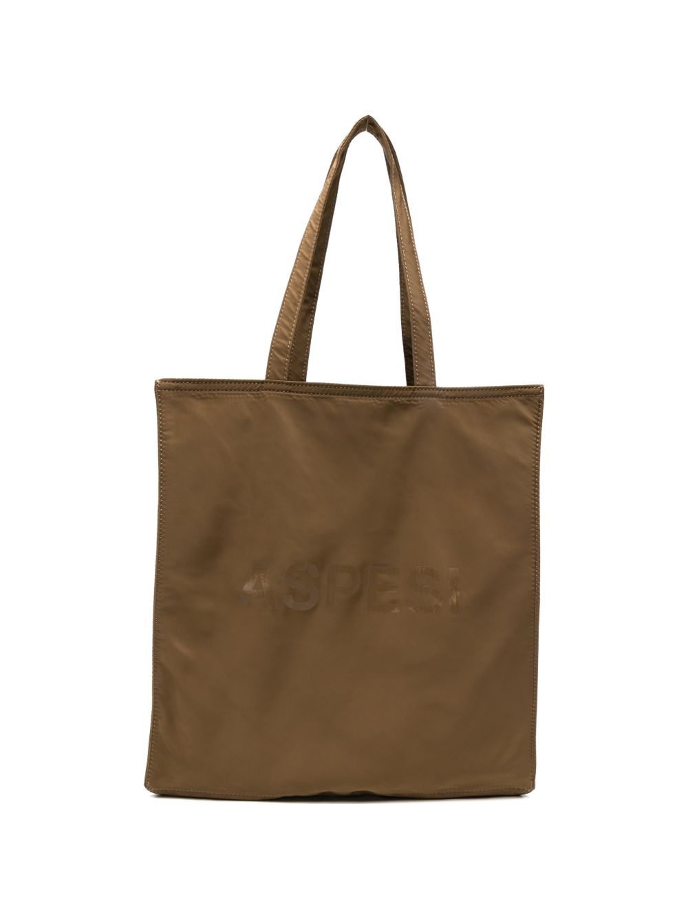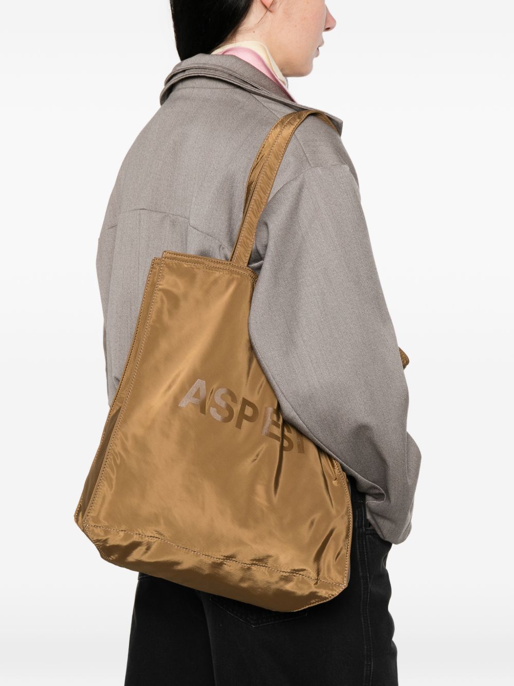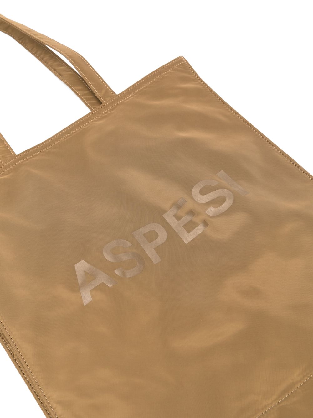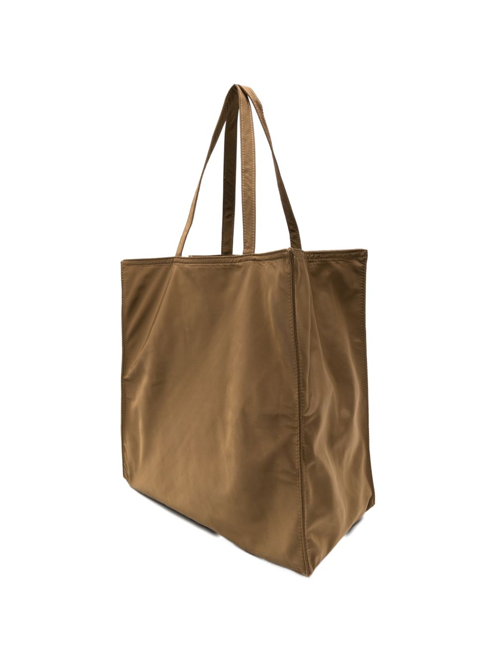 Borsa tote tabacco in nylon, logo lucido stampato