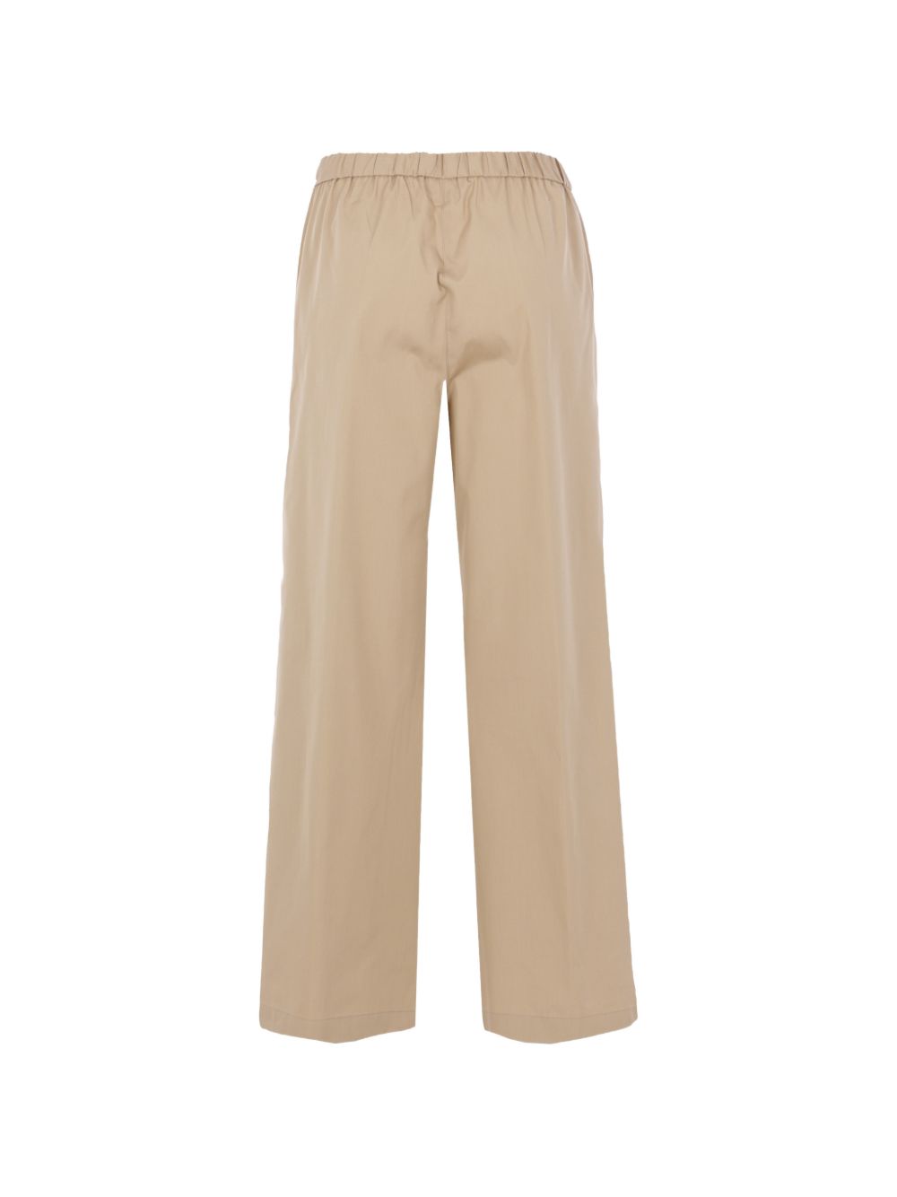 Pantalone lungo in cotone popeline beige, elastico in vita, tasche verticali