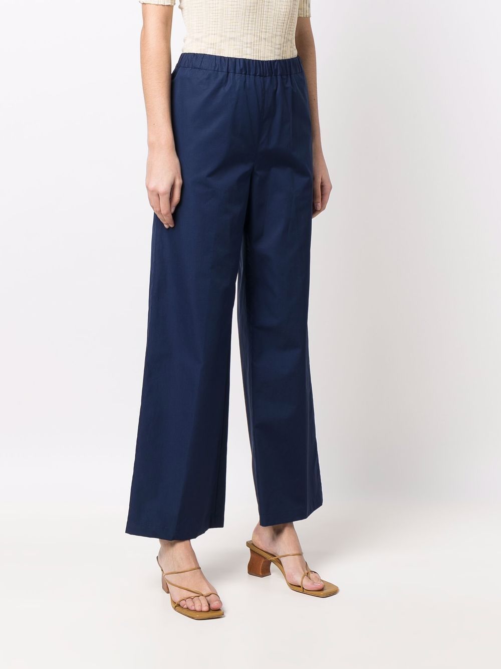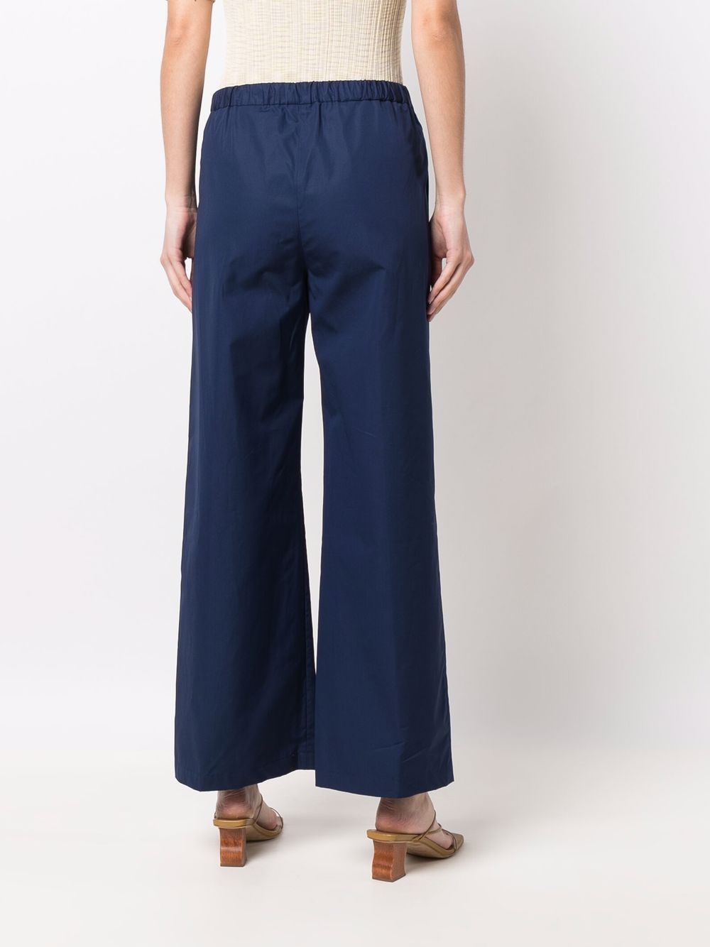 Pantalone lungo in cotone popeline blu, elastico in vita, tasche verticali