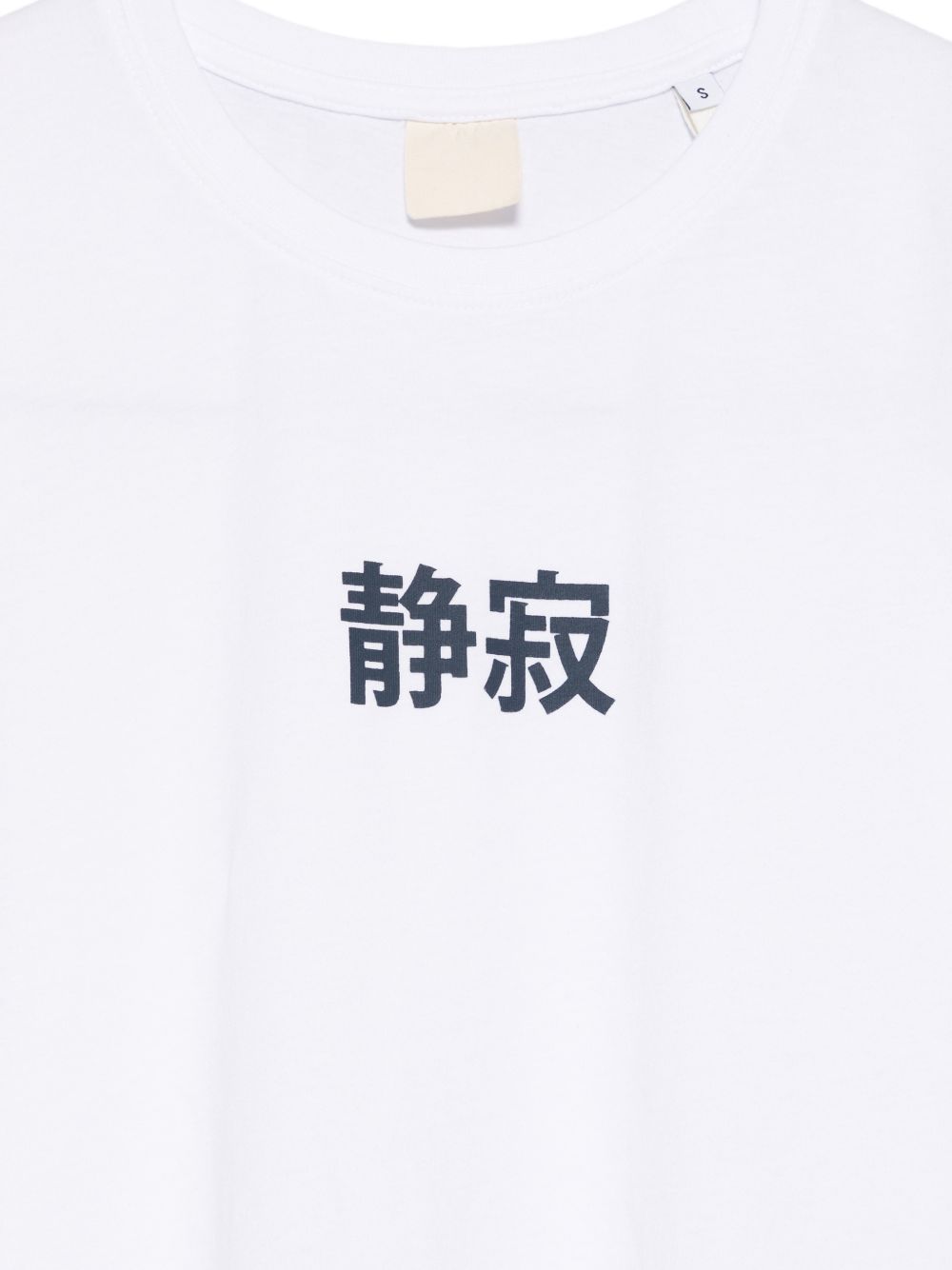 T-shirt bianca in cotone, girocollo, mezze maniche, grafica japan