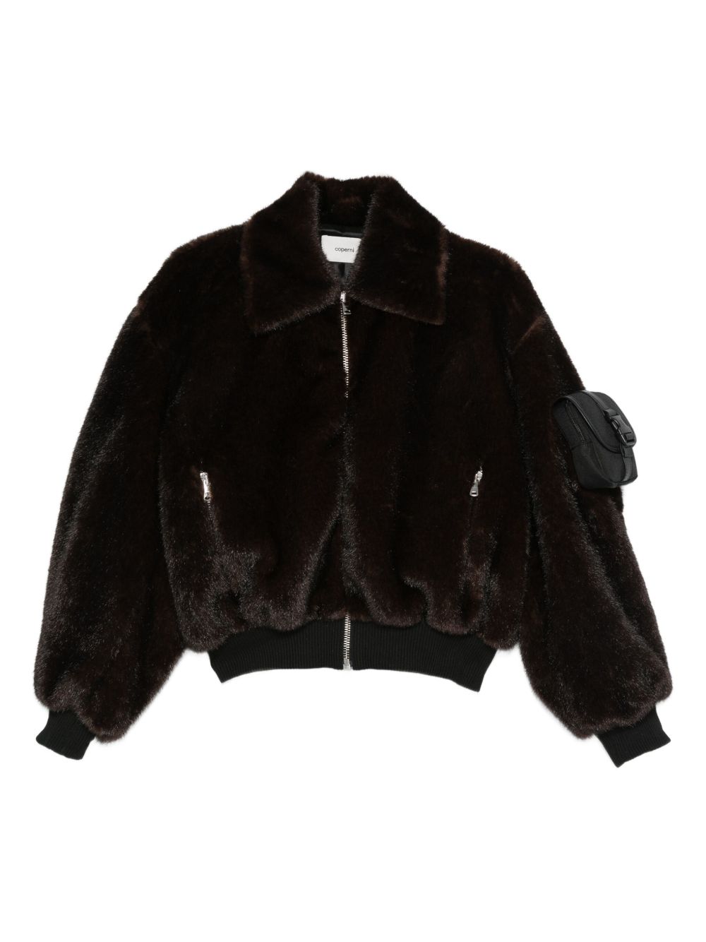 Un capo iconico di Coperni rivisitato in morbida pelliccia sintetica. Questo bomber marrone offre un volume scultoreo con una finitura pulita. Il collo alto, le maniche a bozzolo e la vita leggermente stretta creano una silhouette decisa e moderna. È un capo elegante, rifinito con una toppa con logo tono su tono sul braccio per un tocco utilitaristico.