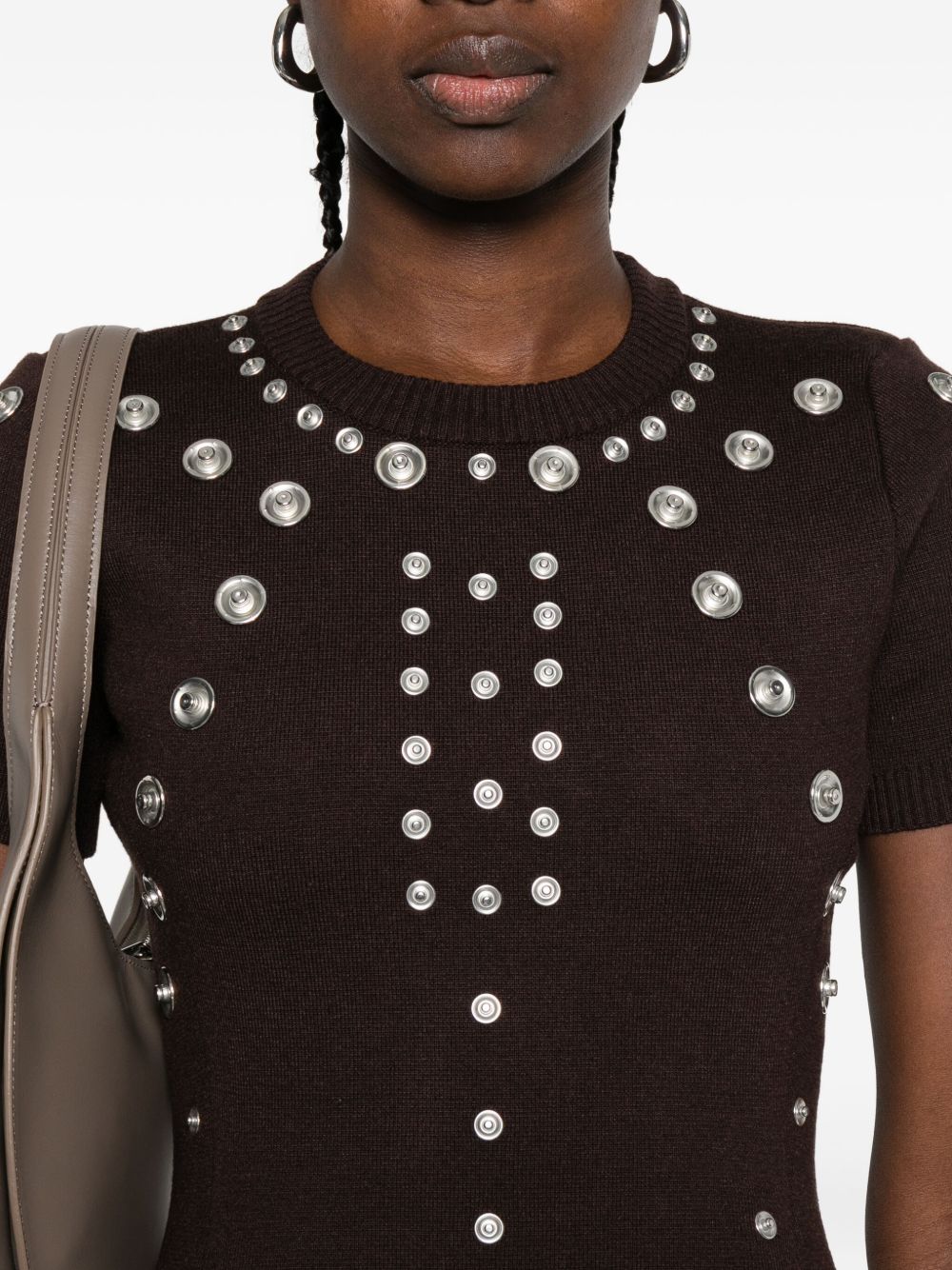 Miniabito in viscosa tech, dettaglio clips, girocollo, mezze maniche, fondo svasato