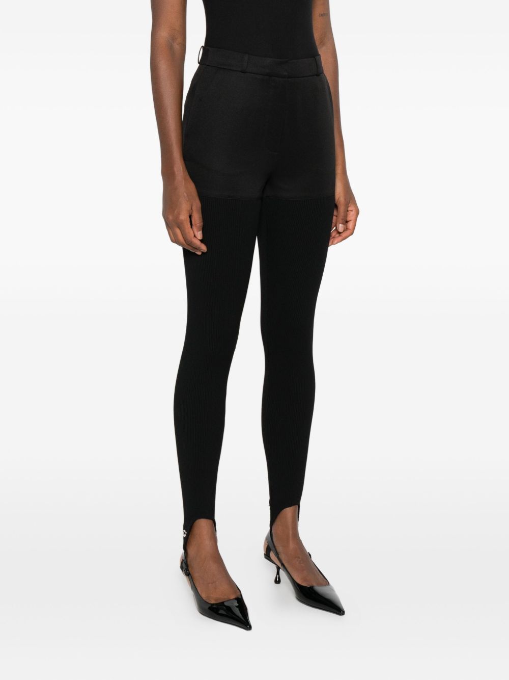 Pantaloni ibridi uniscono la struttura dei pantaloncini in gabardine alla vestibilità elegante dei leggings a costine. Giocando sul contrasto e sull'illusione ottica, modellano la silhouette.