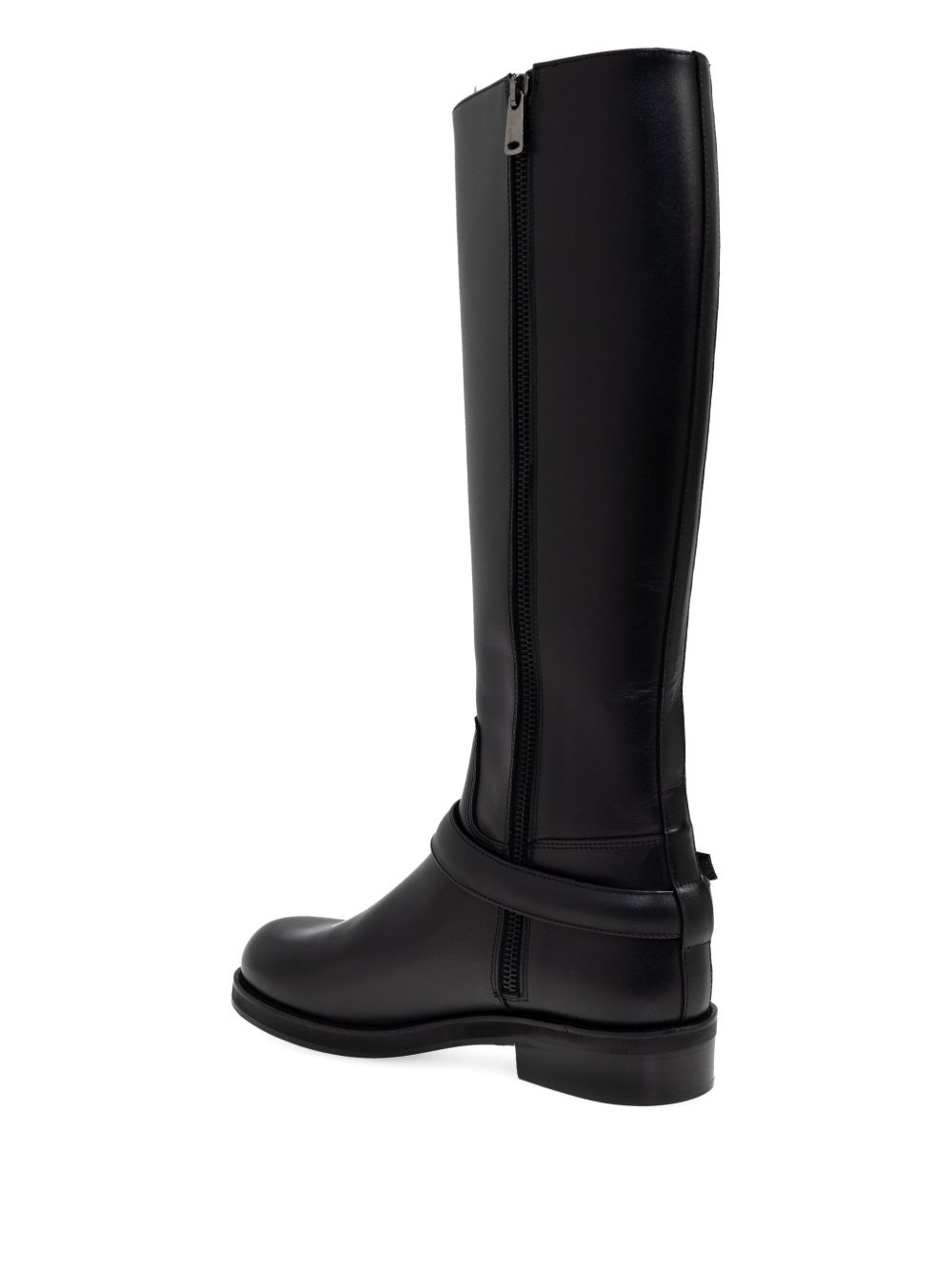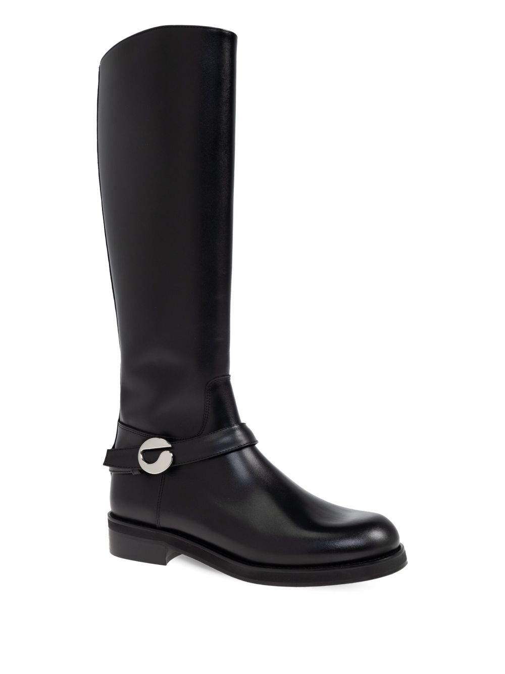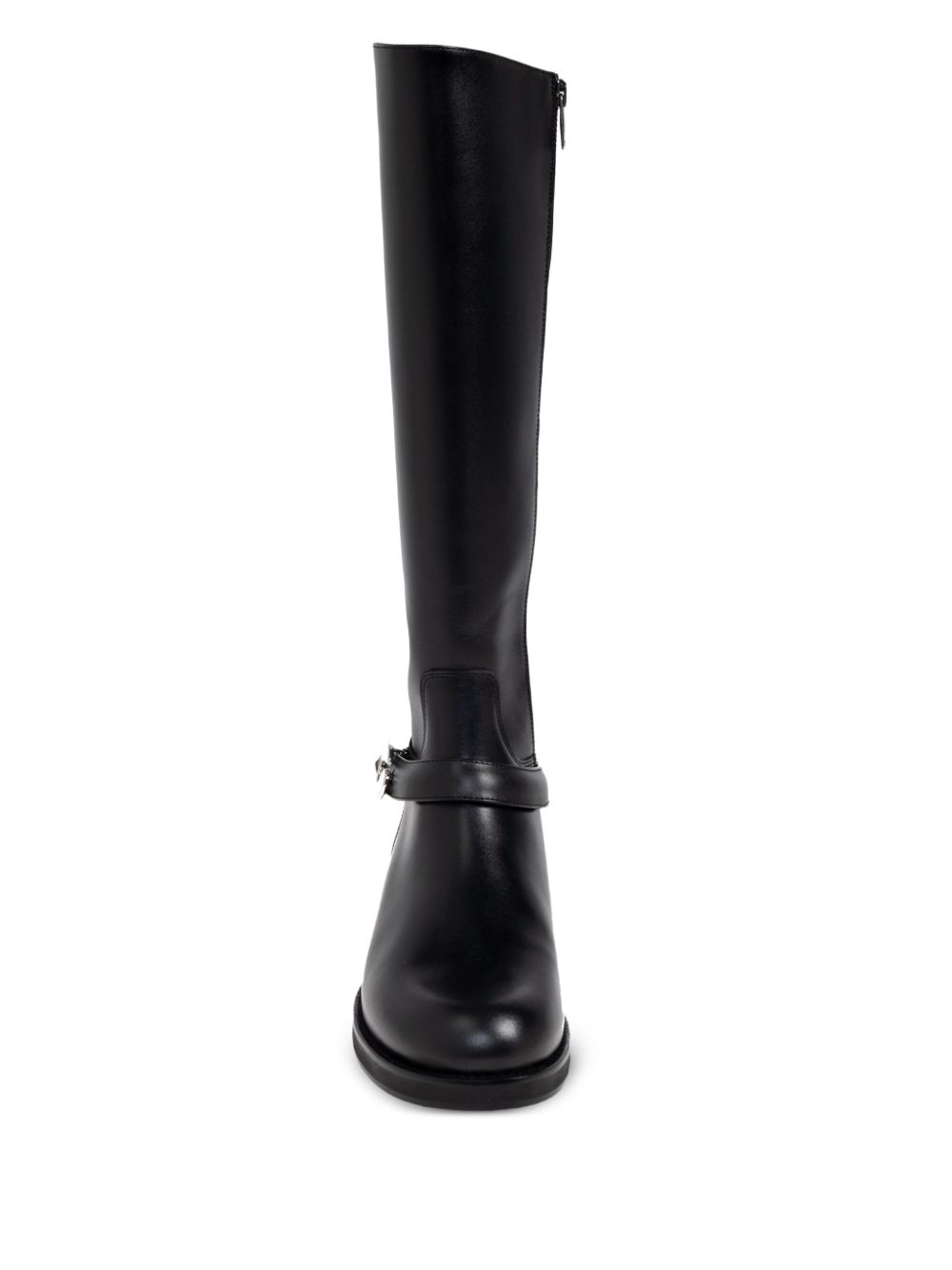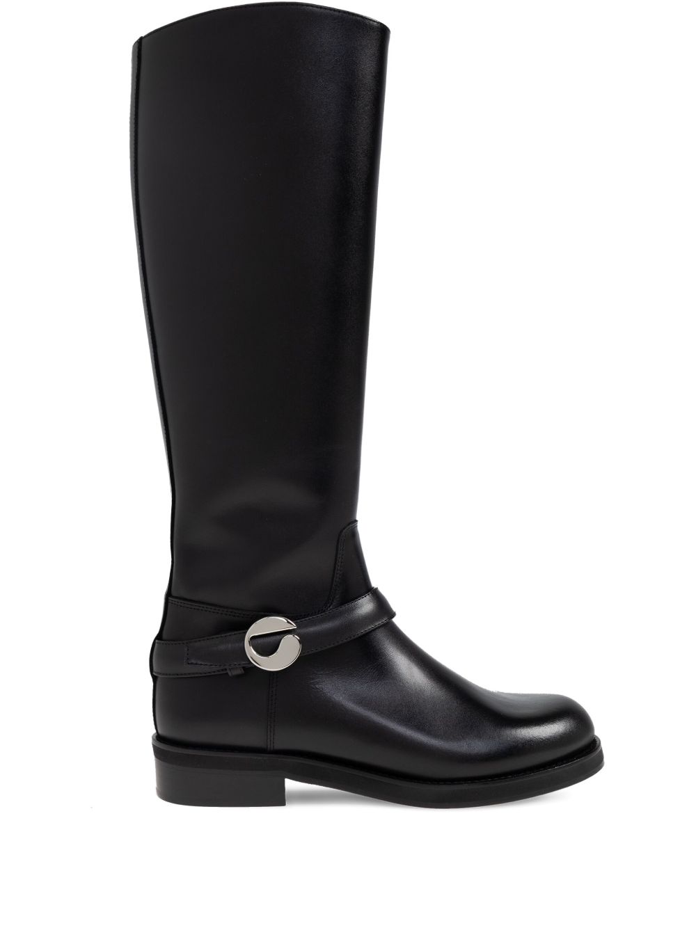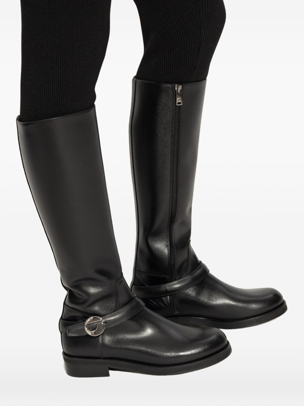 Gli stivali Belt Cavalier di Coperni reinterpretano i codici equestri con un elegante tocco urbano. Il cinturino con fibbia argentata avvolge la caviglia, mentre la punta arrotondata e il tacco basso garantiscono comodità e struttura. Con una zip laterale pulita per una maggiore funzionalità.