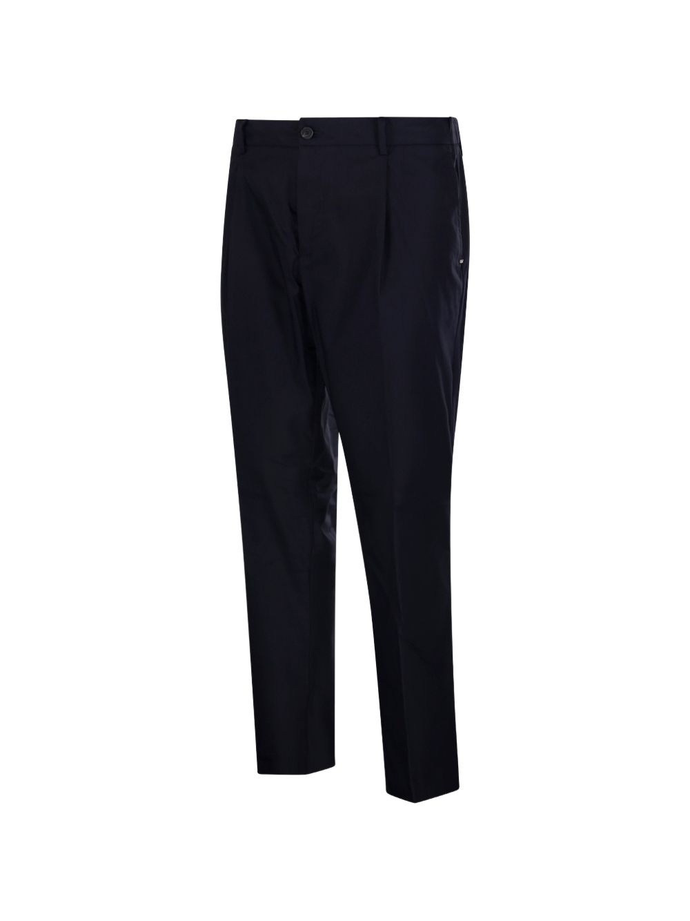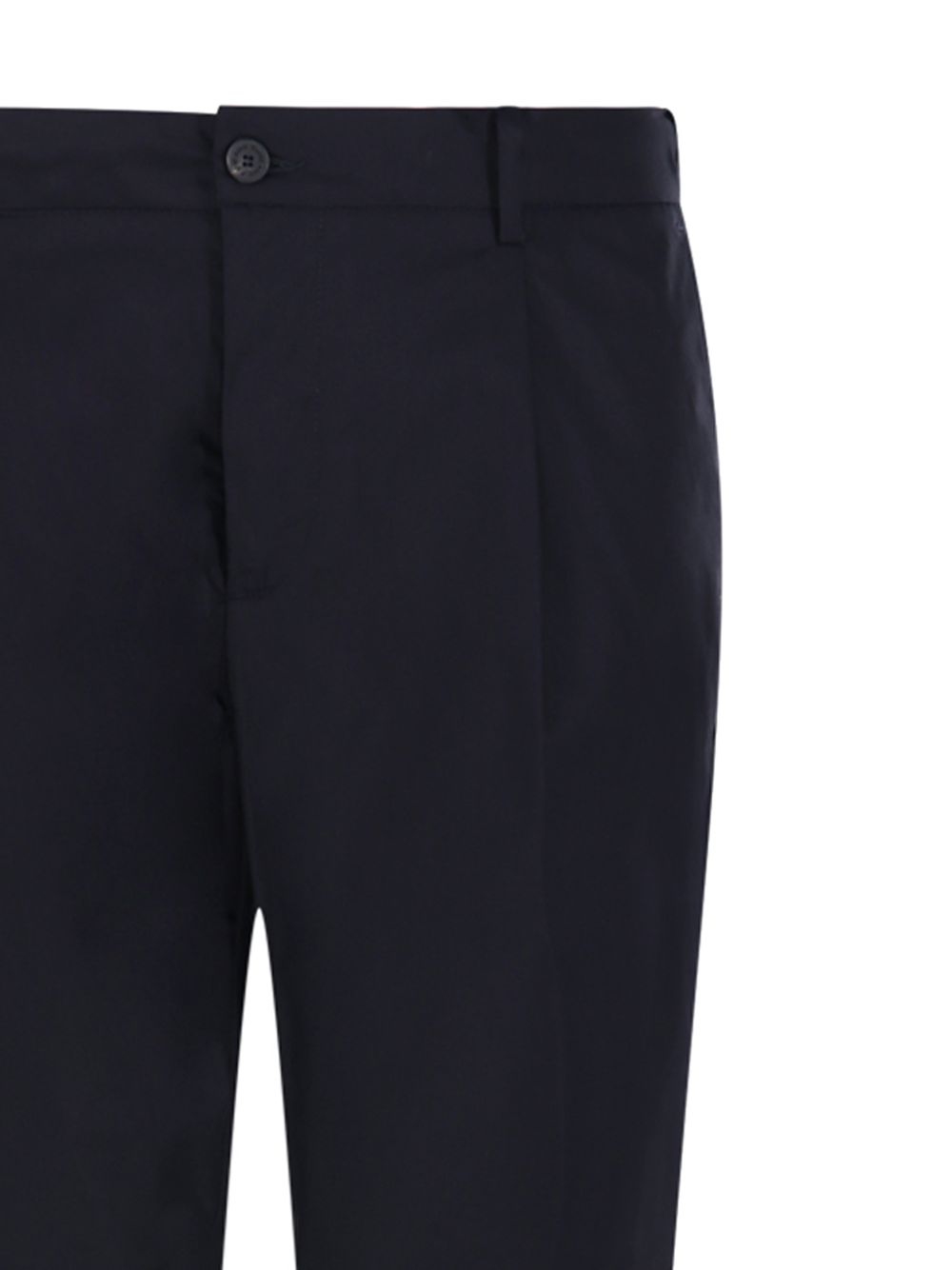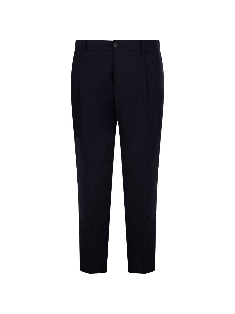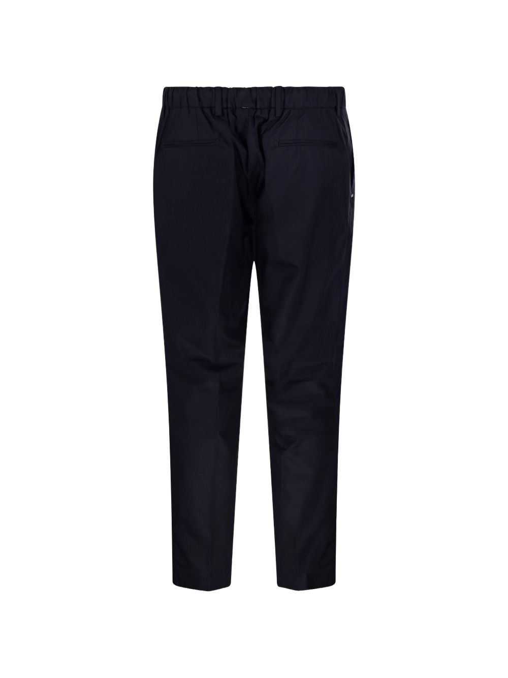 Pantalone in cotone gabardine blu, modello stretto, coulisse elastico posteriore