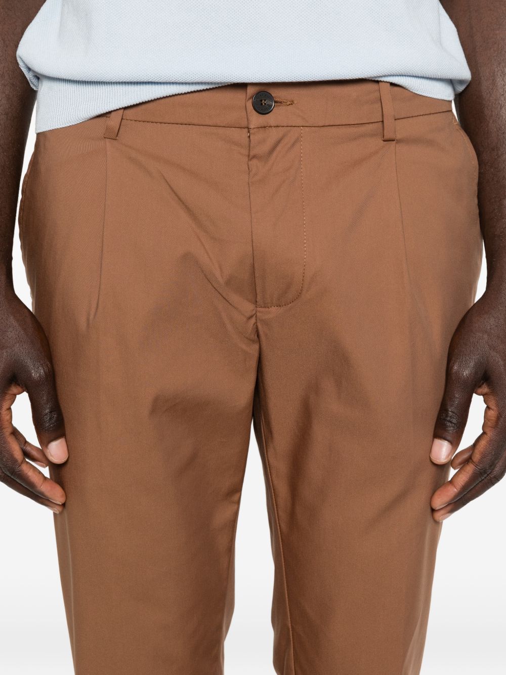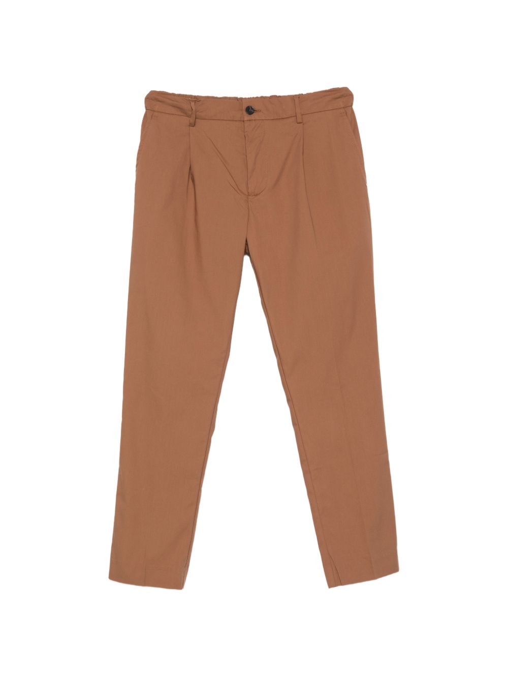 Pantalone in cotone gabardine tabacco, modello stretto, coulisse elastico posteriore