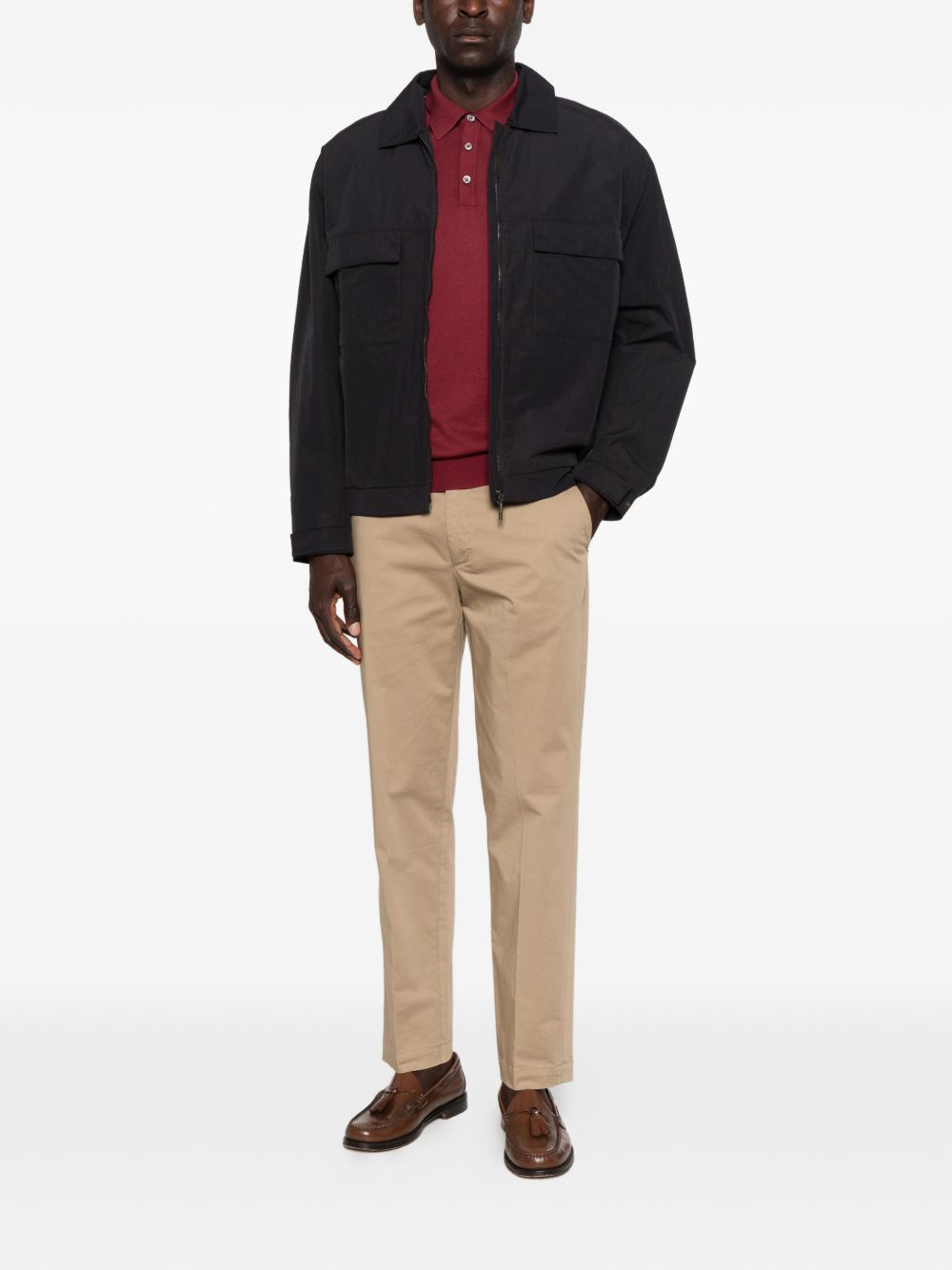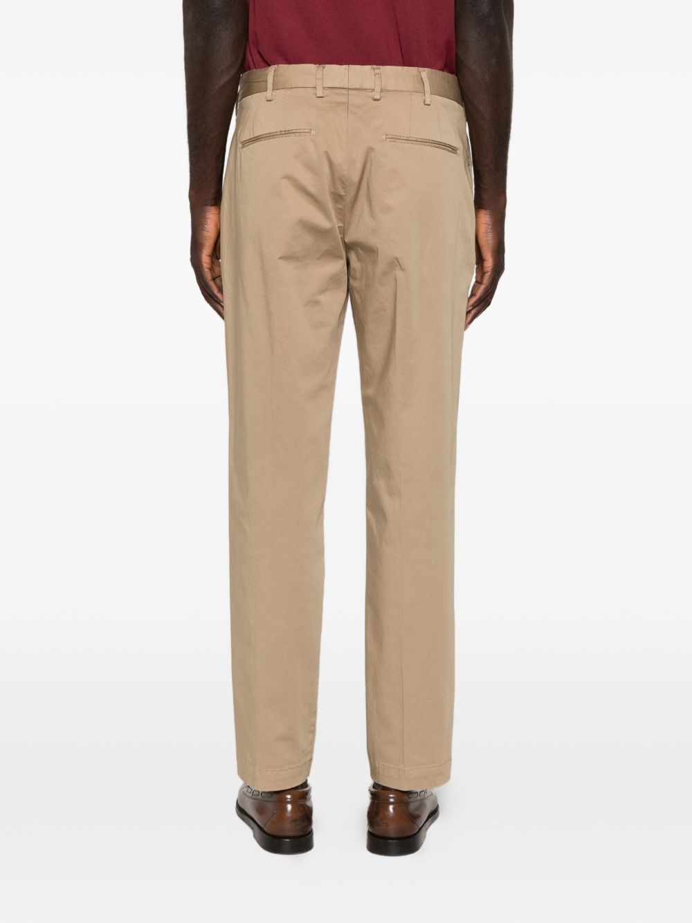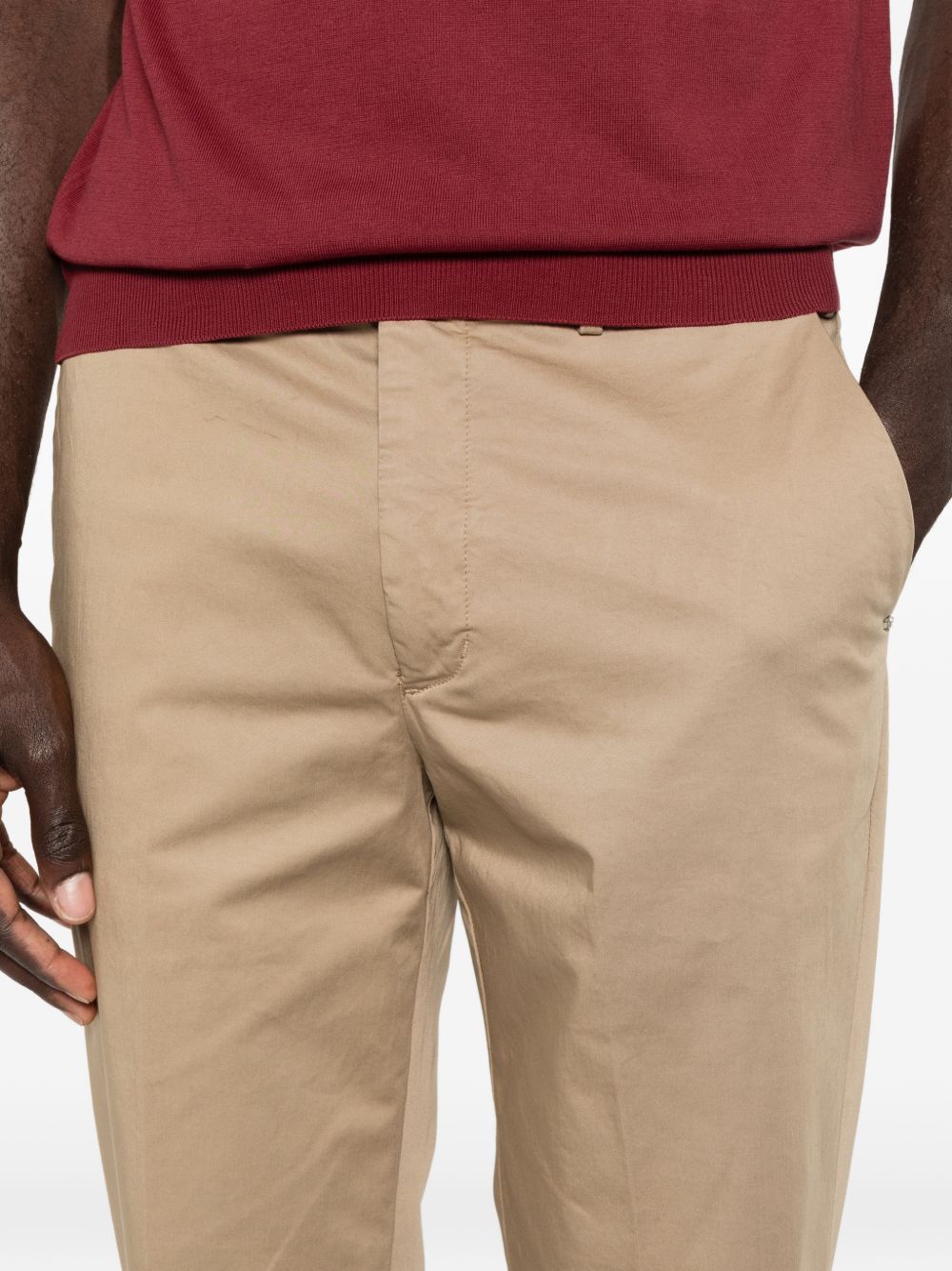 Pantalone in raso cotone t.c, passanti per cintura, chiusura frontale nascosta, due tasche laterali a fessura