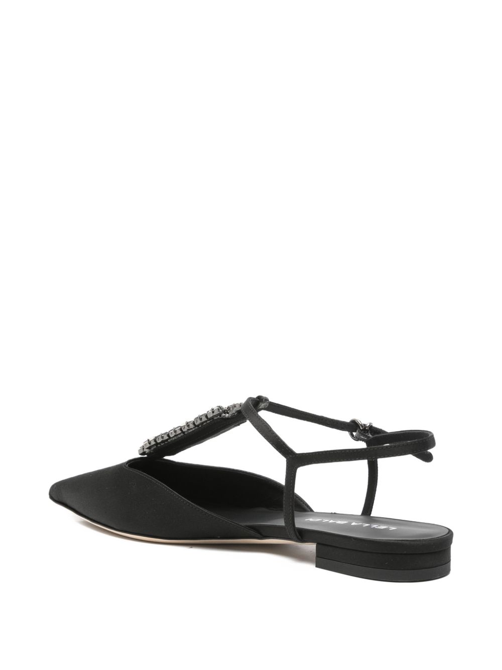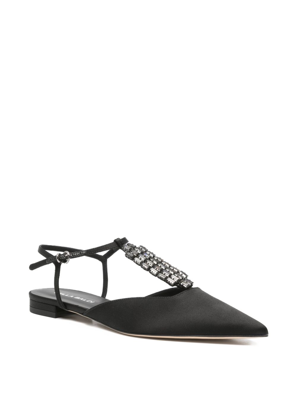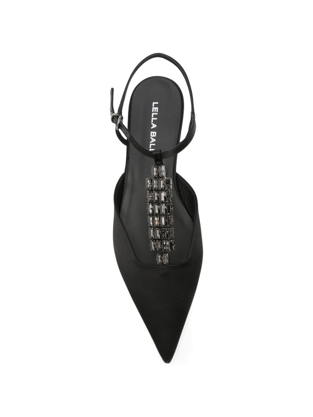 Ballerina slingback in raso nero con dettaglio gioiello cristalli neri