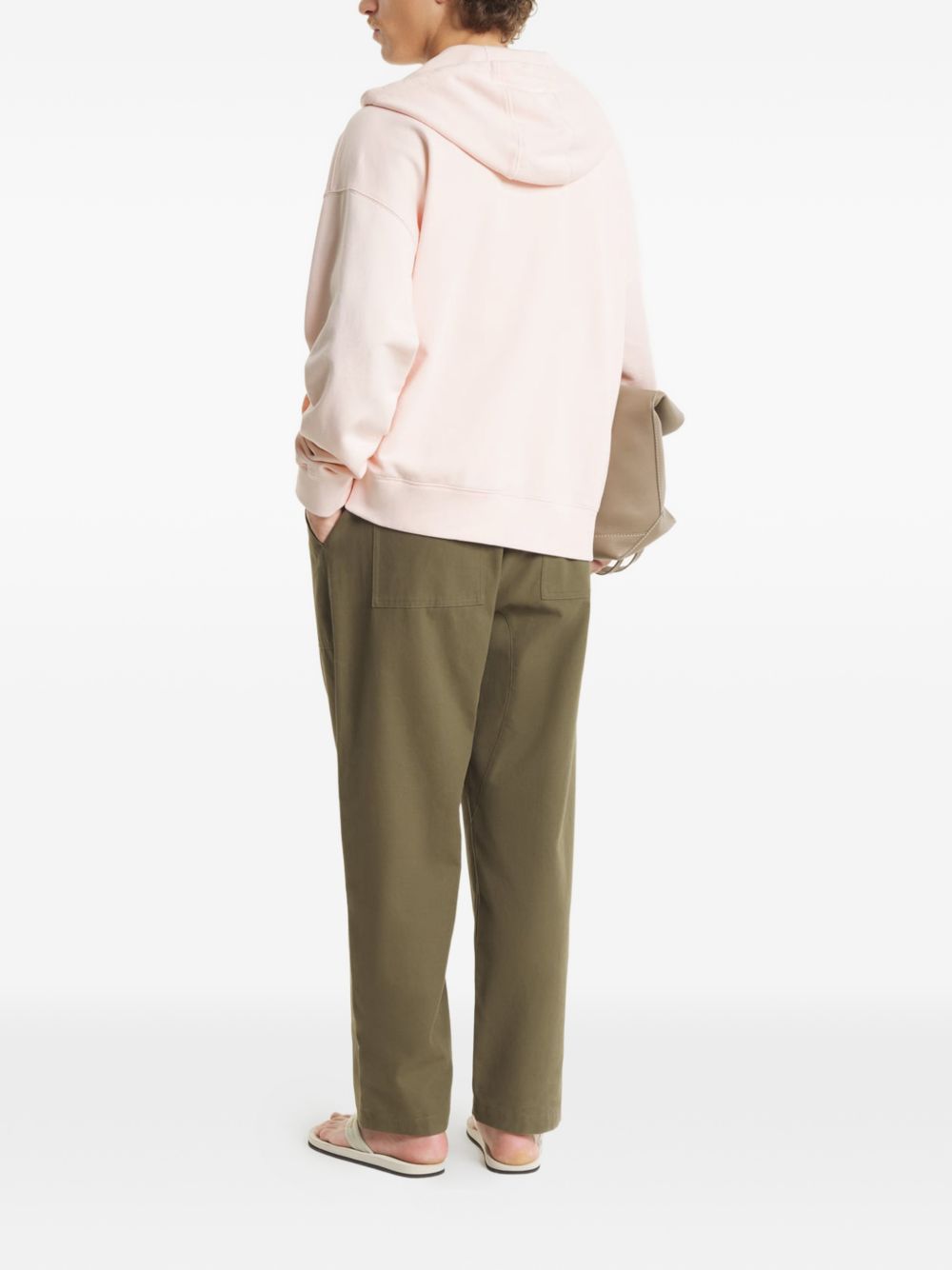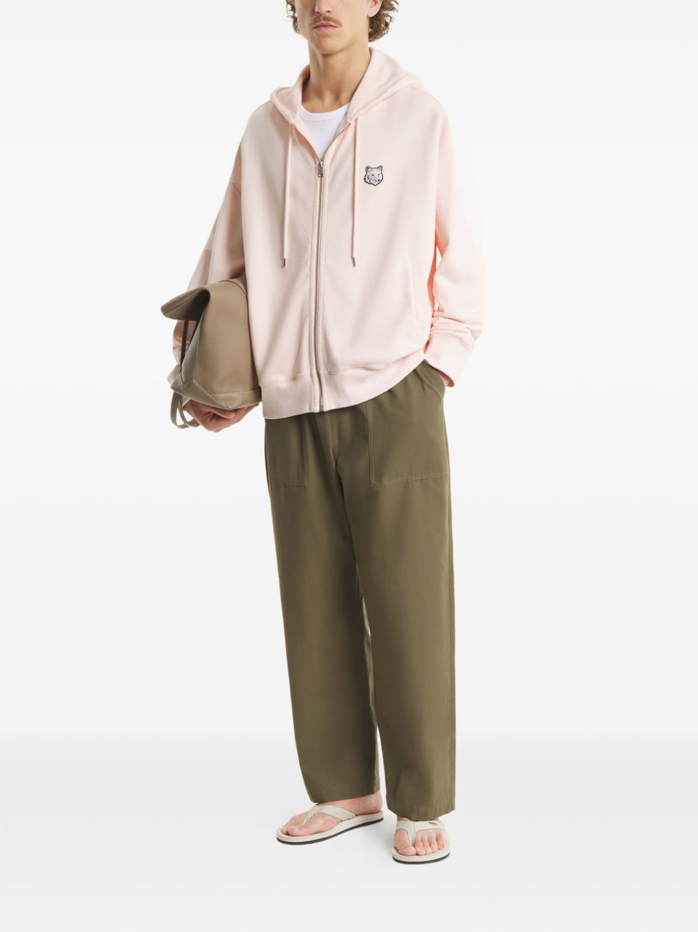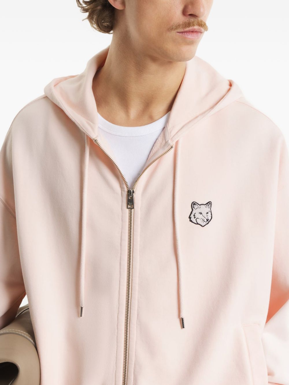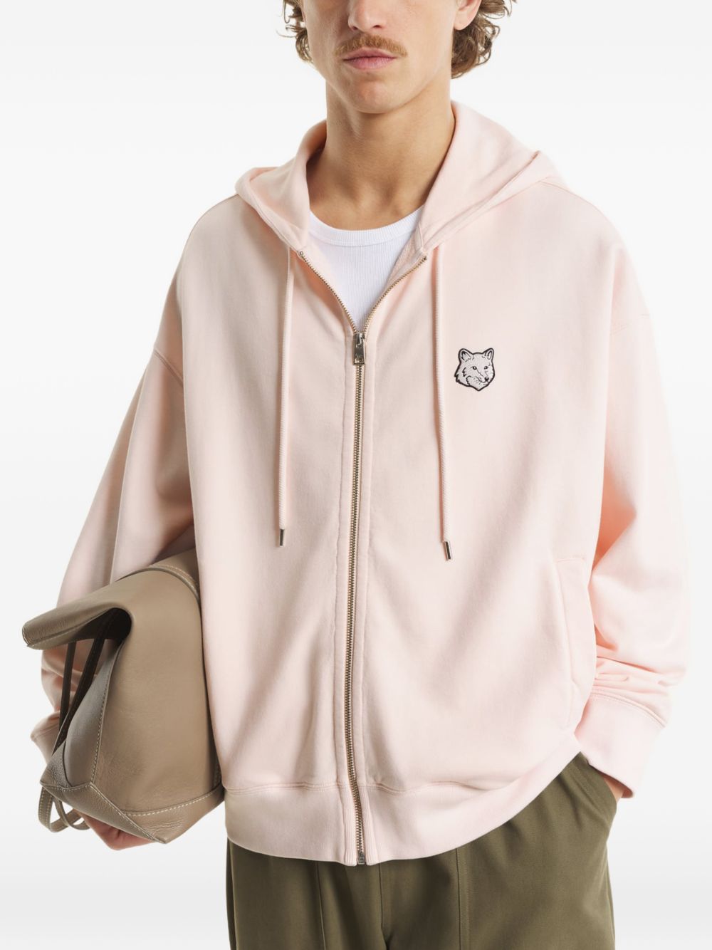 Felpa con zip in cotone cipria, cappuccio regolabile, applicazione logo sul petto