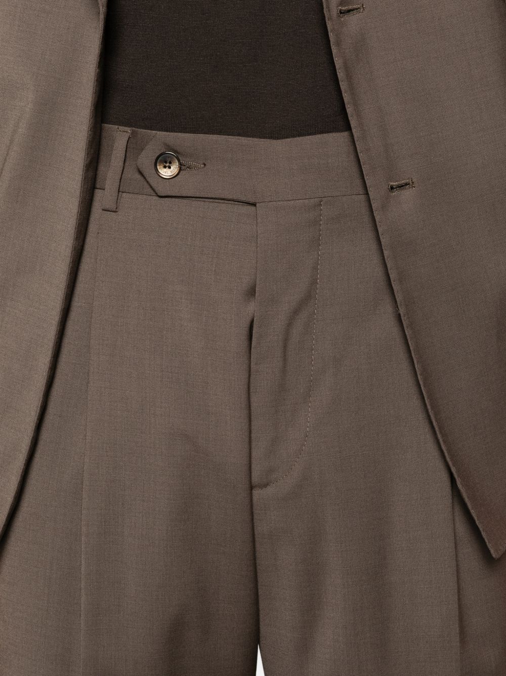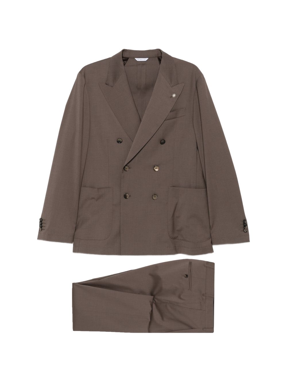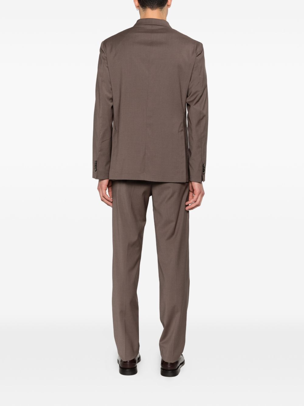 Abito doppiopetto in tela lana marrone cioccolato, giacca doppiopetto, rever a lancia, pantalone taglio classico